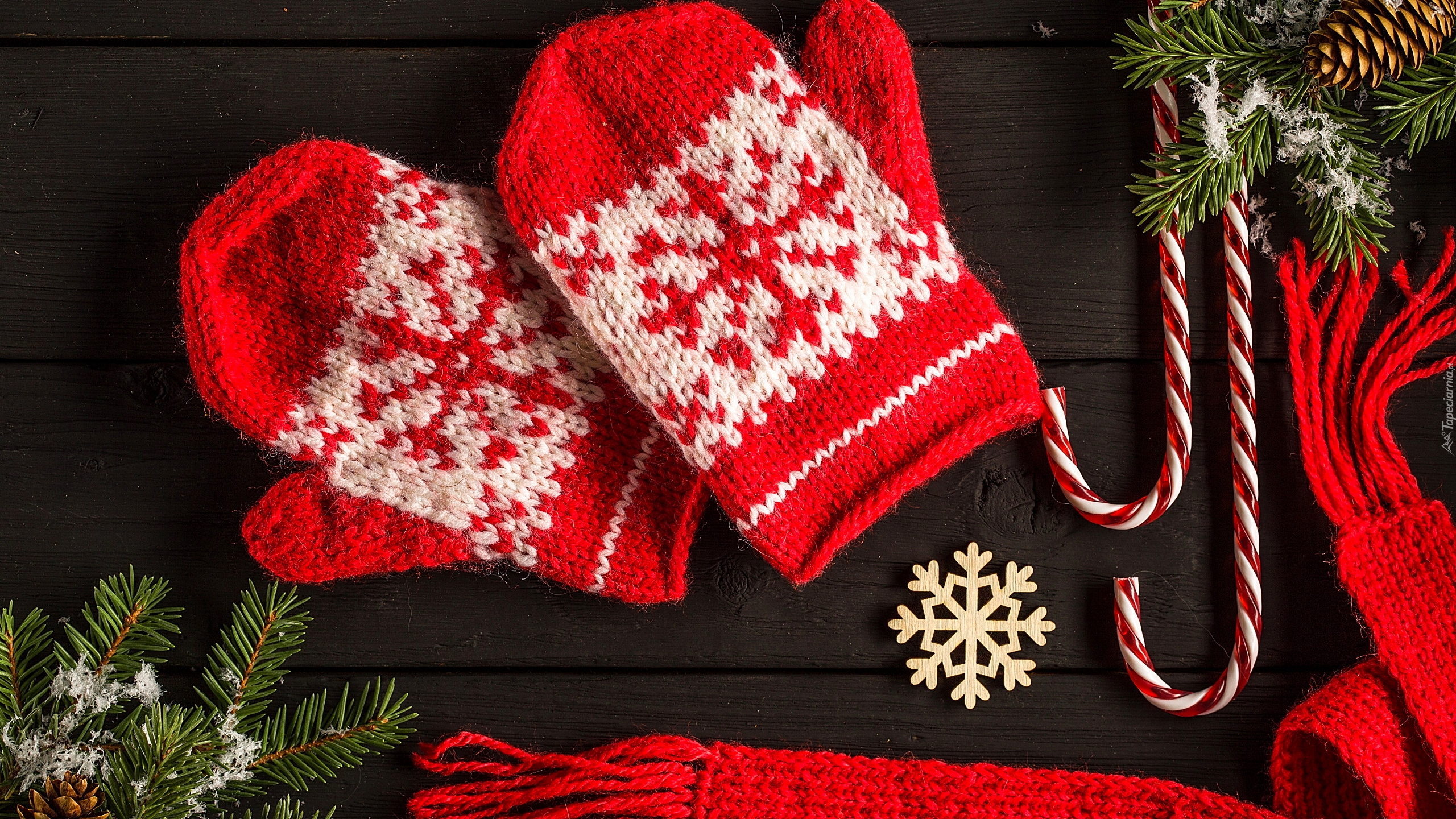 Edytor tapety: Rękawiczki i szalik przy zielonych gałązkach