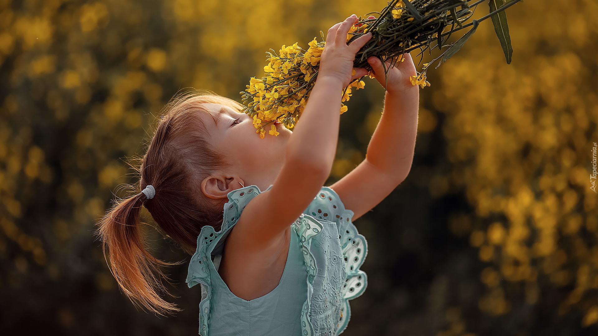 Edytor tapety: Dziewczynka wąchająca kwiatki