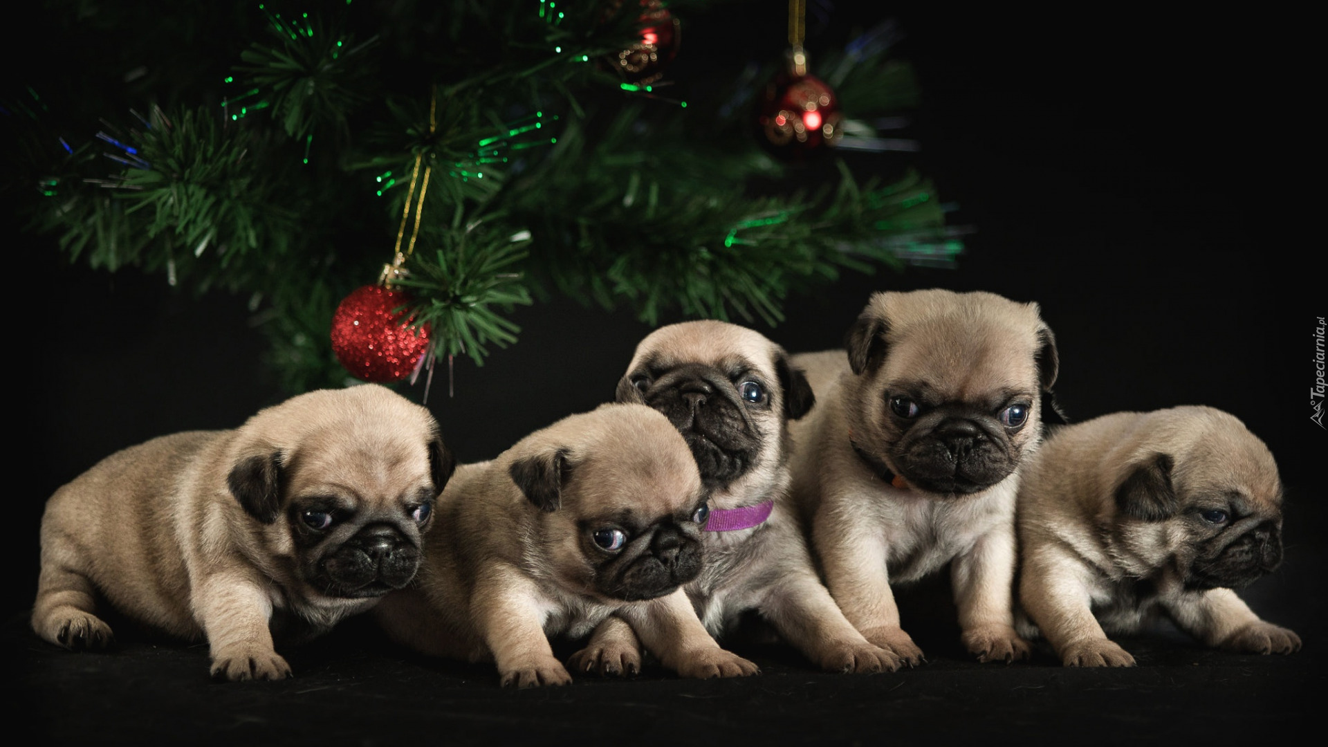 Edytor tapety: Mopsy pod choinką