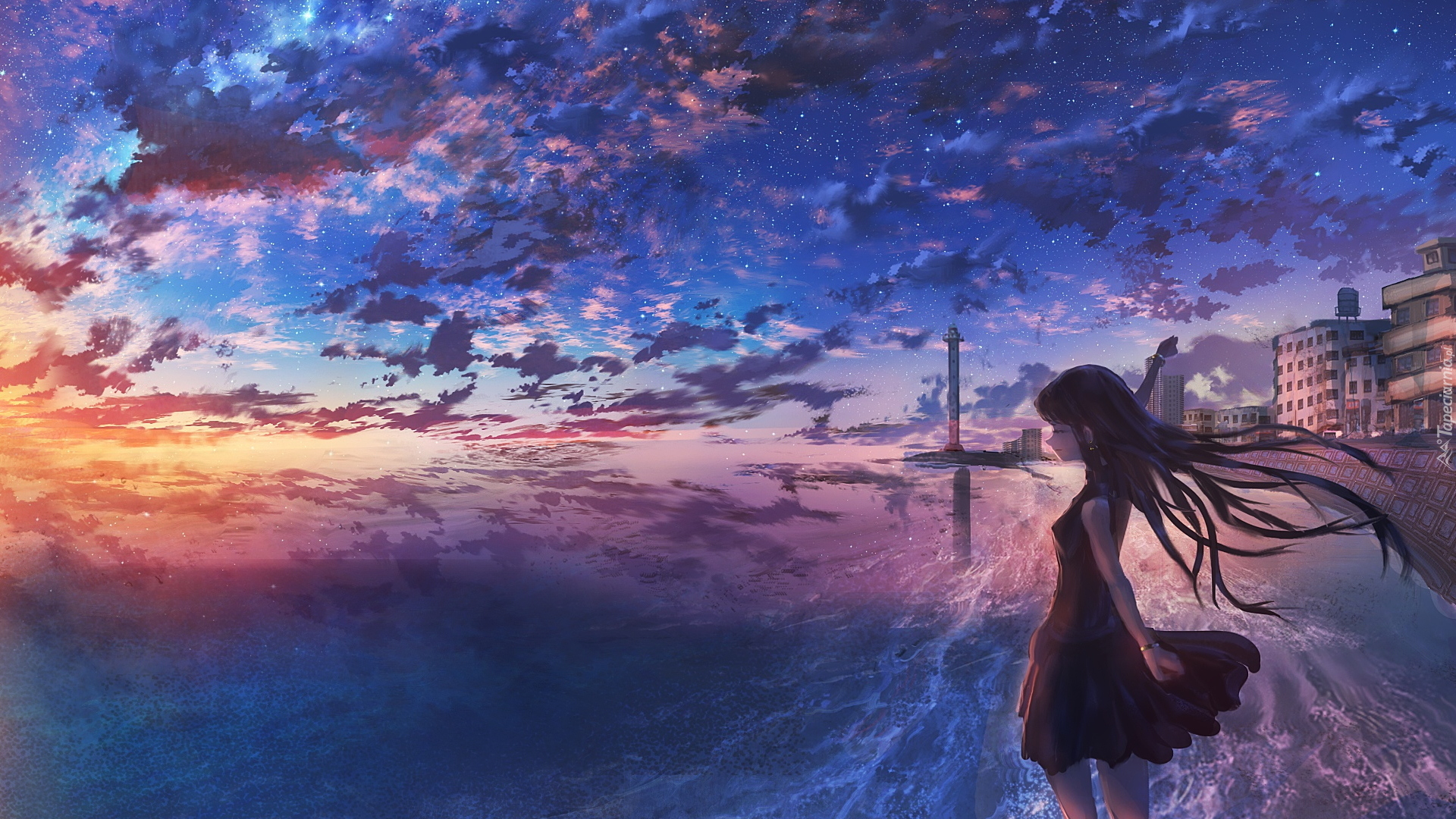 Edytor tapety: Dziewczyna nad morzem w grafice