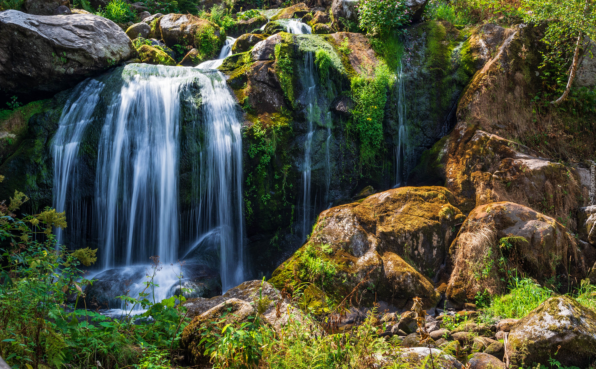 Edytor tapety: Wodospad na kamieniach w słońcu