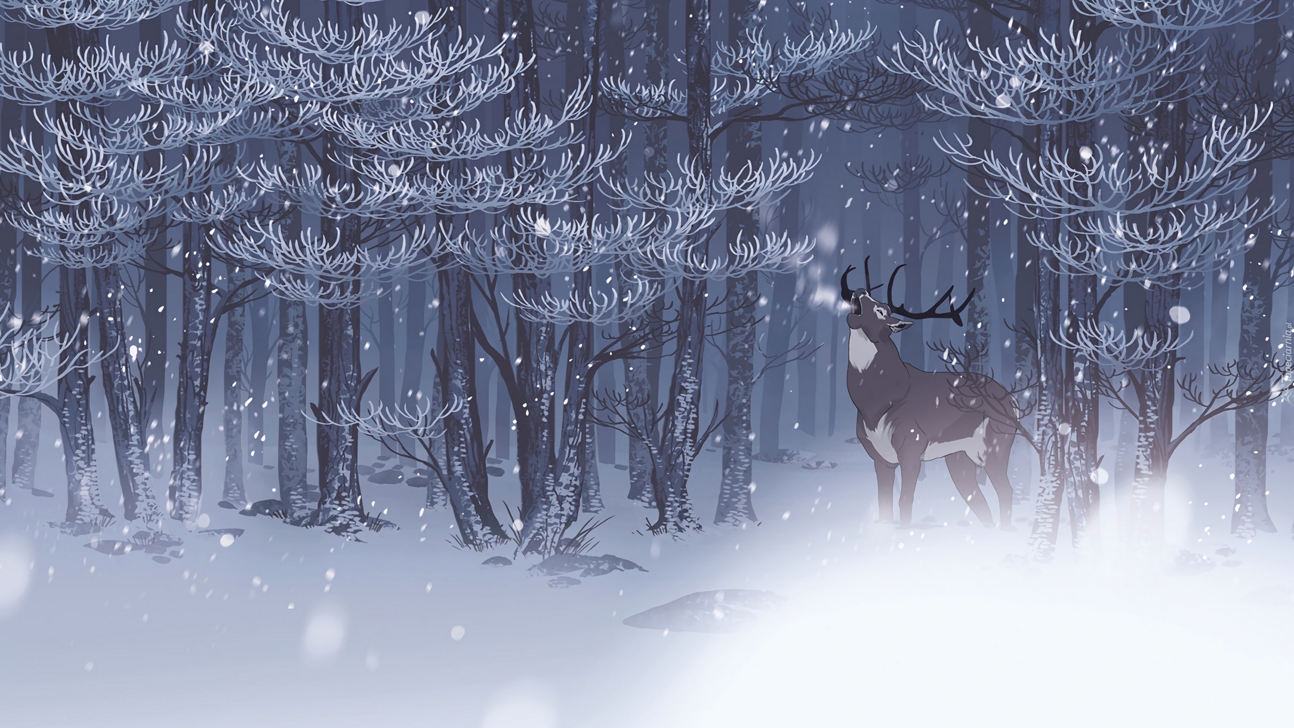 Edytor tapety: Grafika z jeleniem w lesie zimą