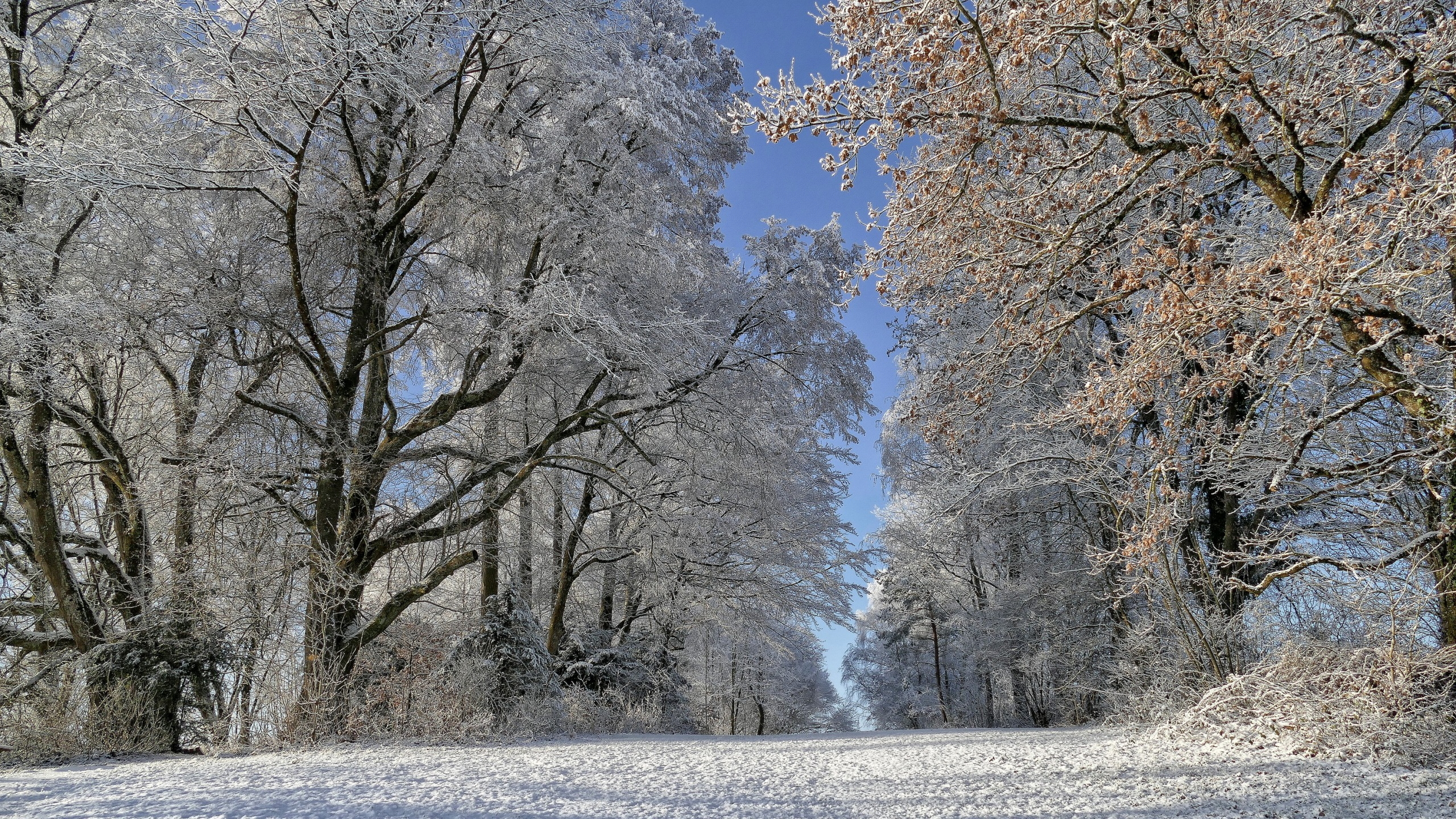 Edytor tapety: Droga z oszronionymi drzewami na poboczu