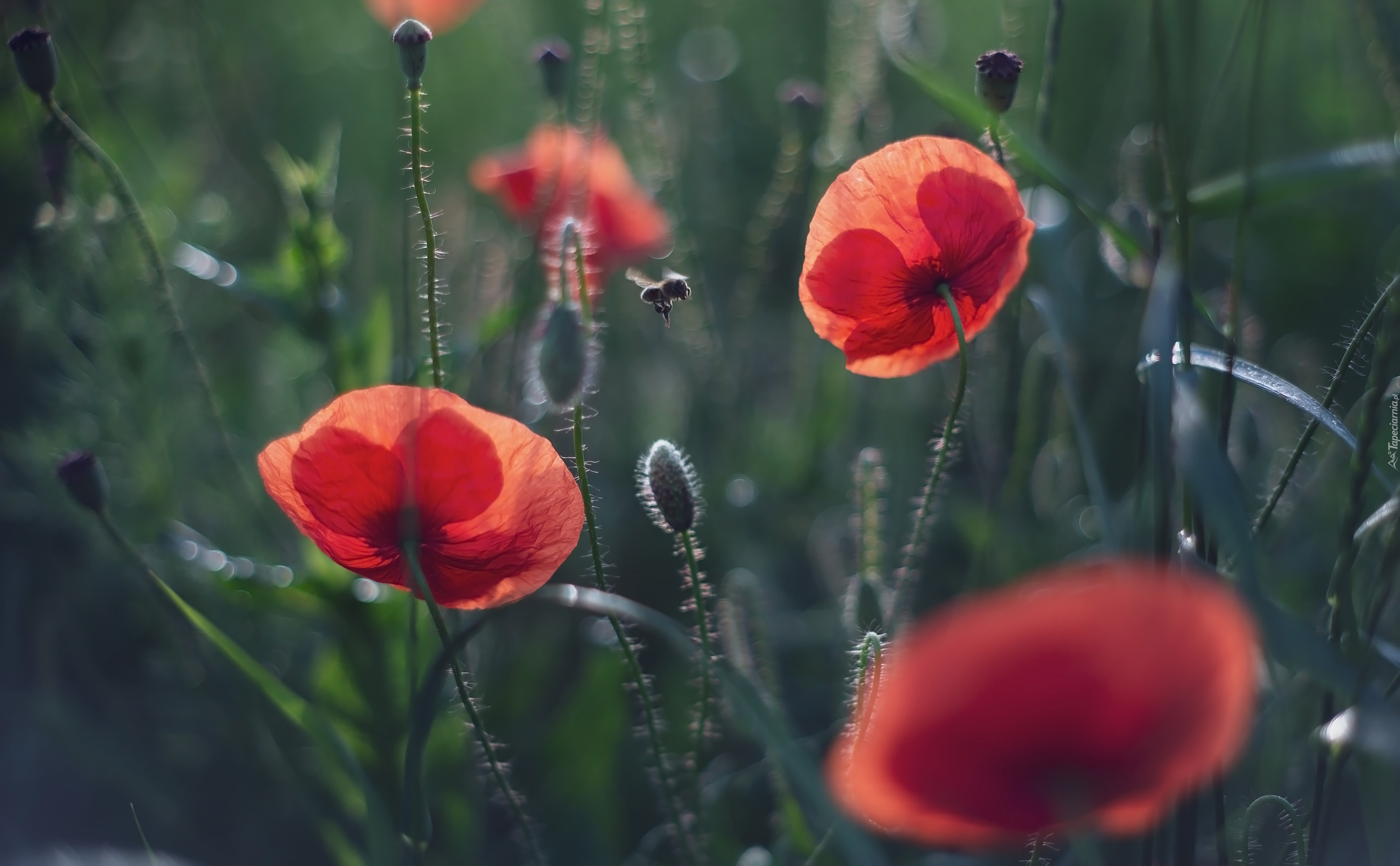 Edytor tapety: Owad obok czerwonych maków