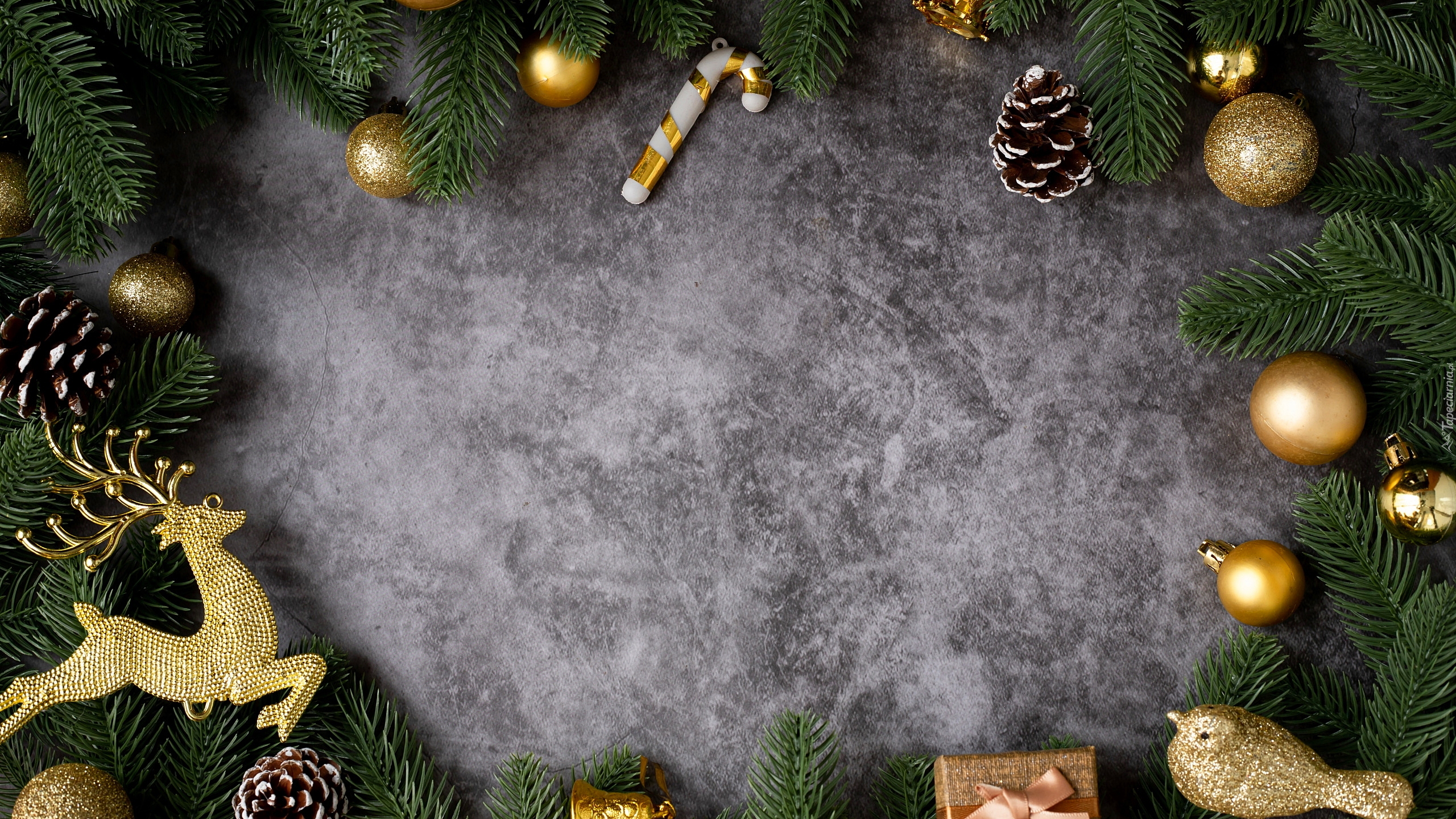 Edytor tapety: Złote ozdoby świąteczne na gałązkach