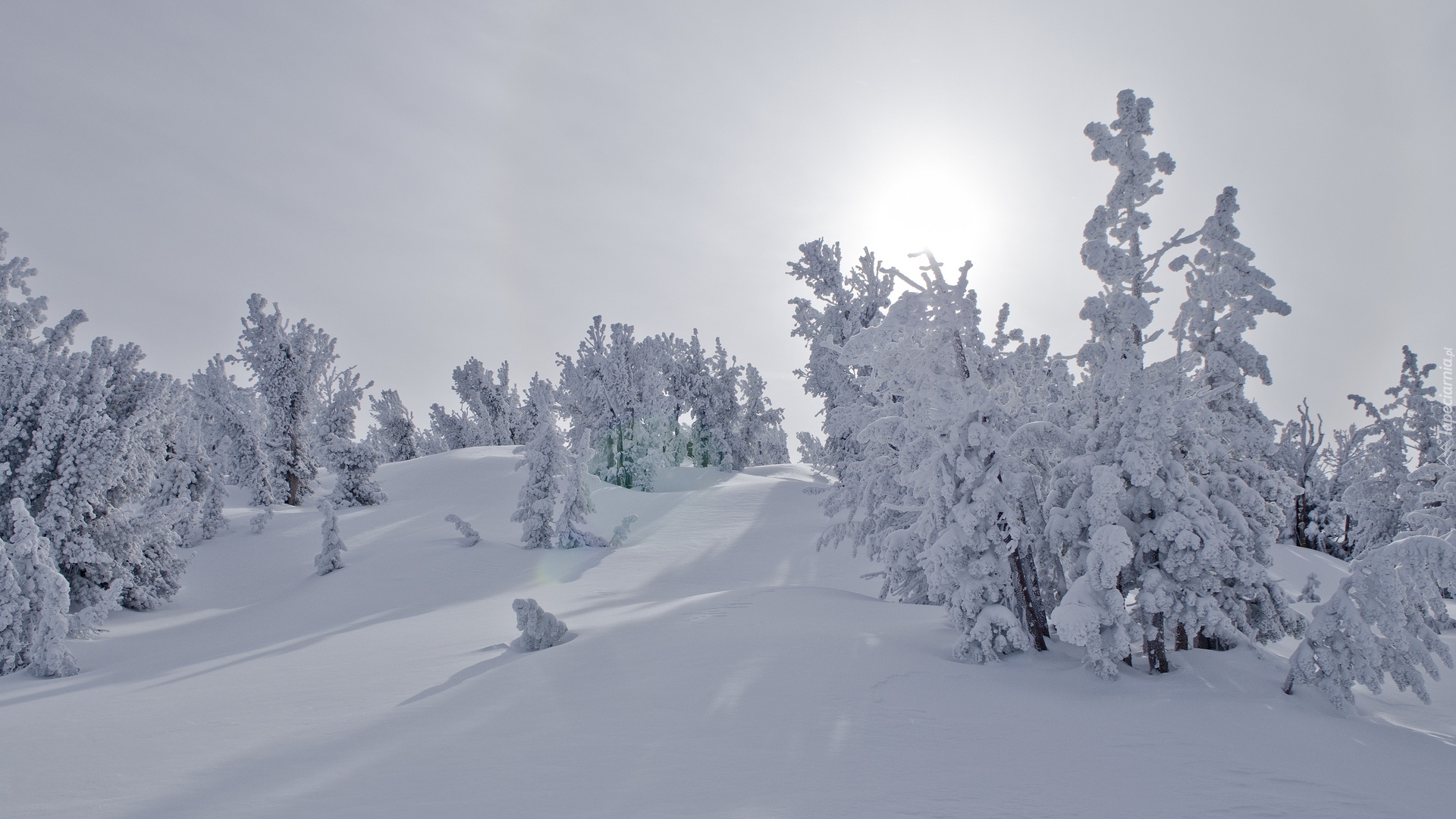 Edytor tapety: Ośnieżone drzewa w głębokim śniegu