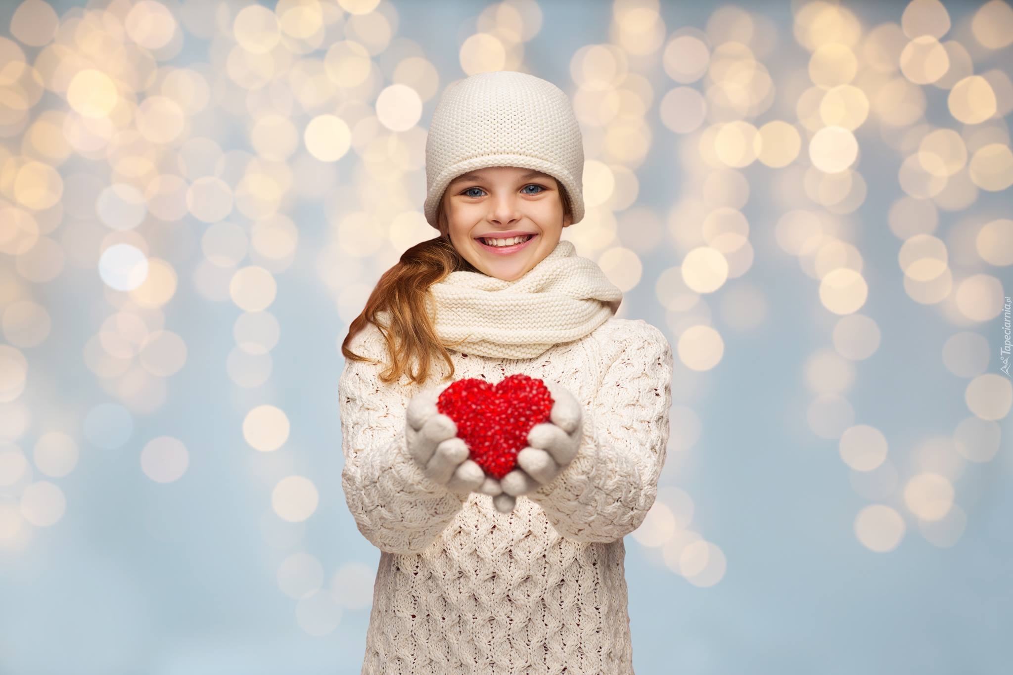 Edytor tapety: Dziewczynka z serduszkiem w dłoniach