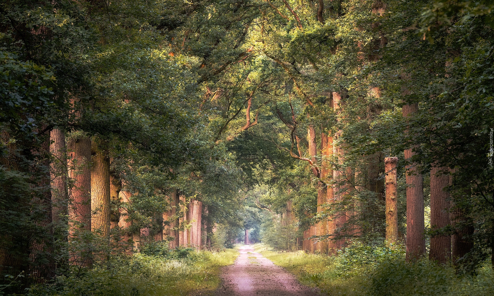 Edytor tapety: Droga wśród liściastych drzew