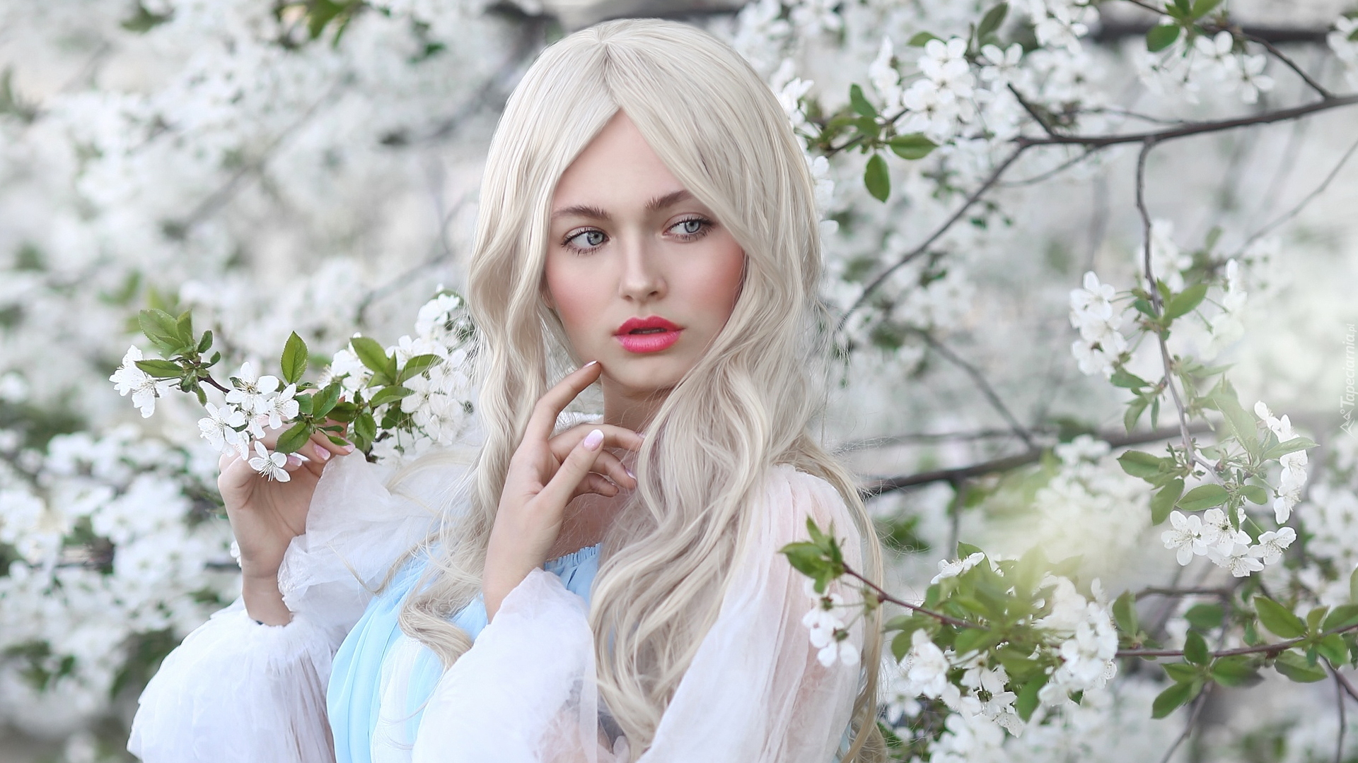 Edytor tapety: Dziewczyna pośród owocowych gałązek