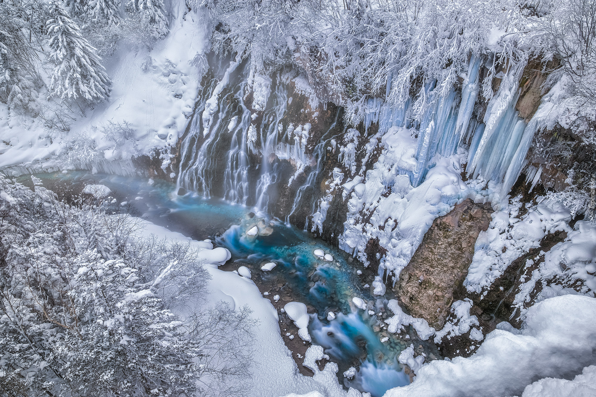 Edytor tapety: Wodospad Shirahige Waterfall zimową porą