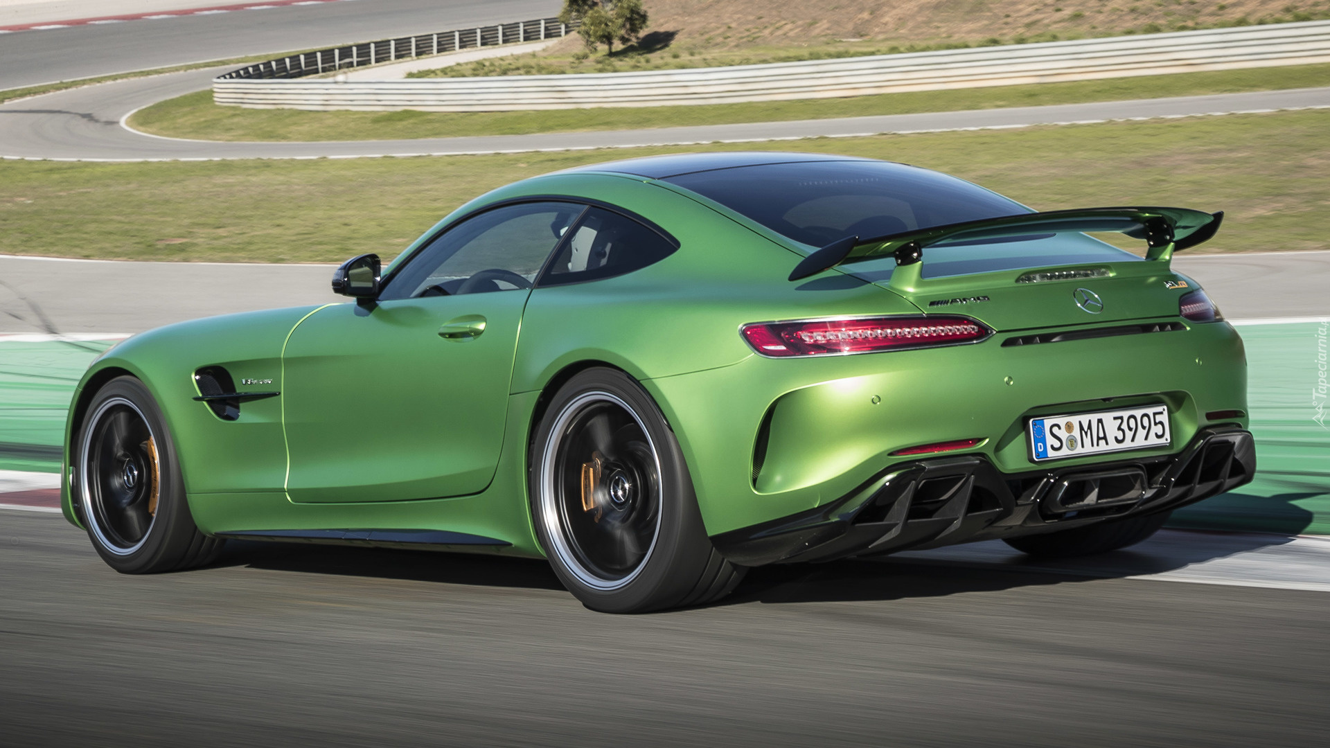 Edytor tapety: Zielony Mercedes-AMG GT R na torze