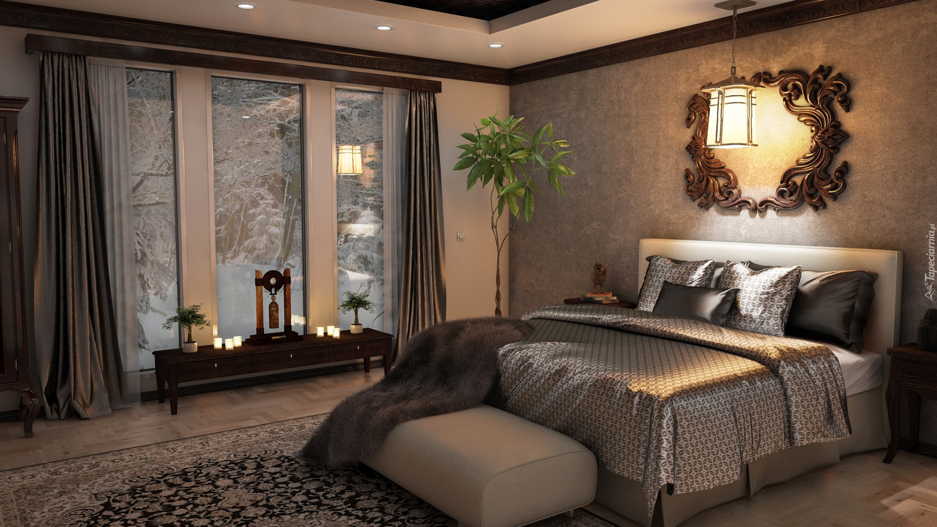 Edytor tapety: Lampa nad łóżkiem w sypialni