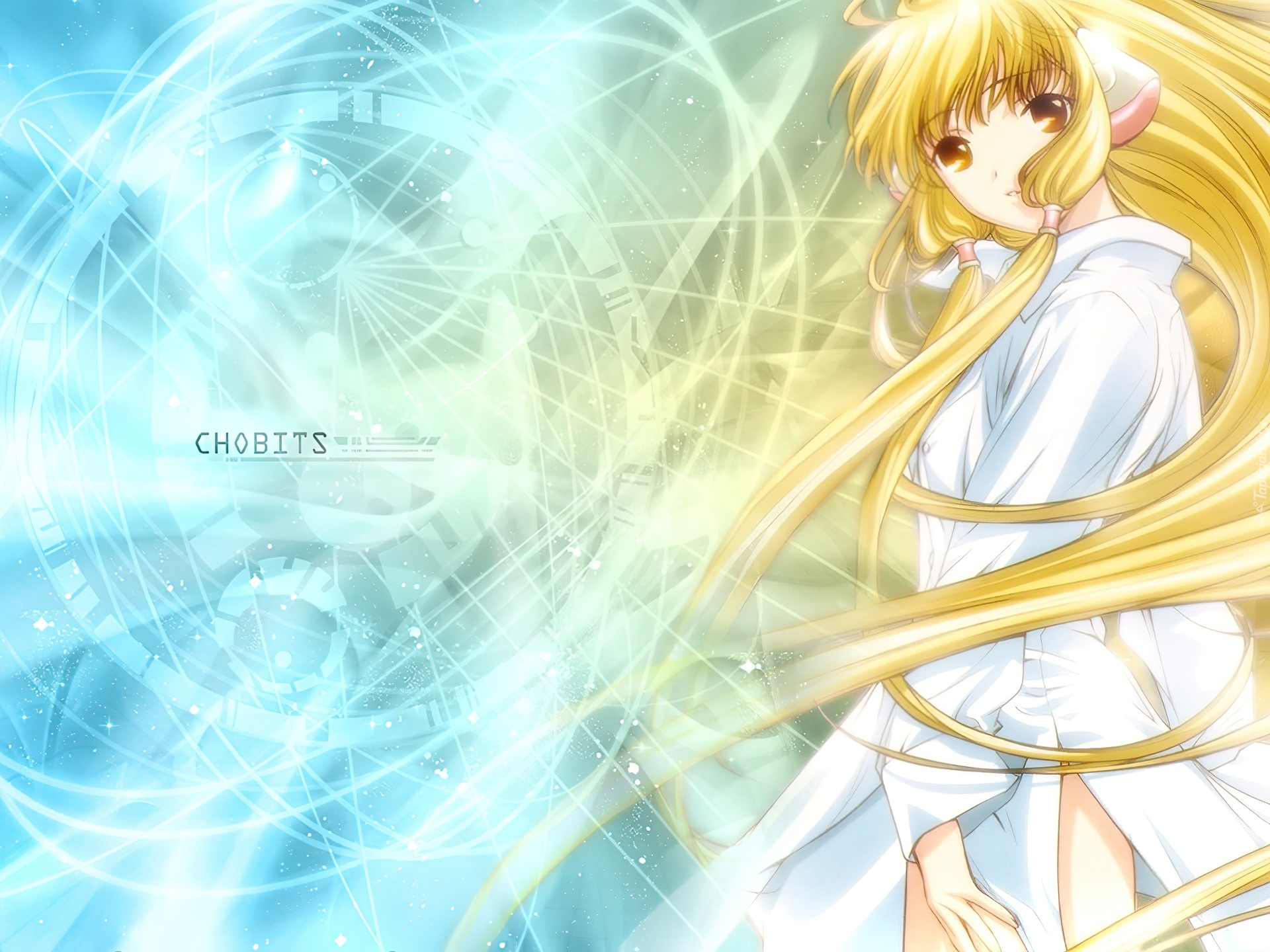 Edytor tapety: Chobits, włosy, dziewczyna, gwiazdy, koszula