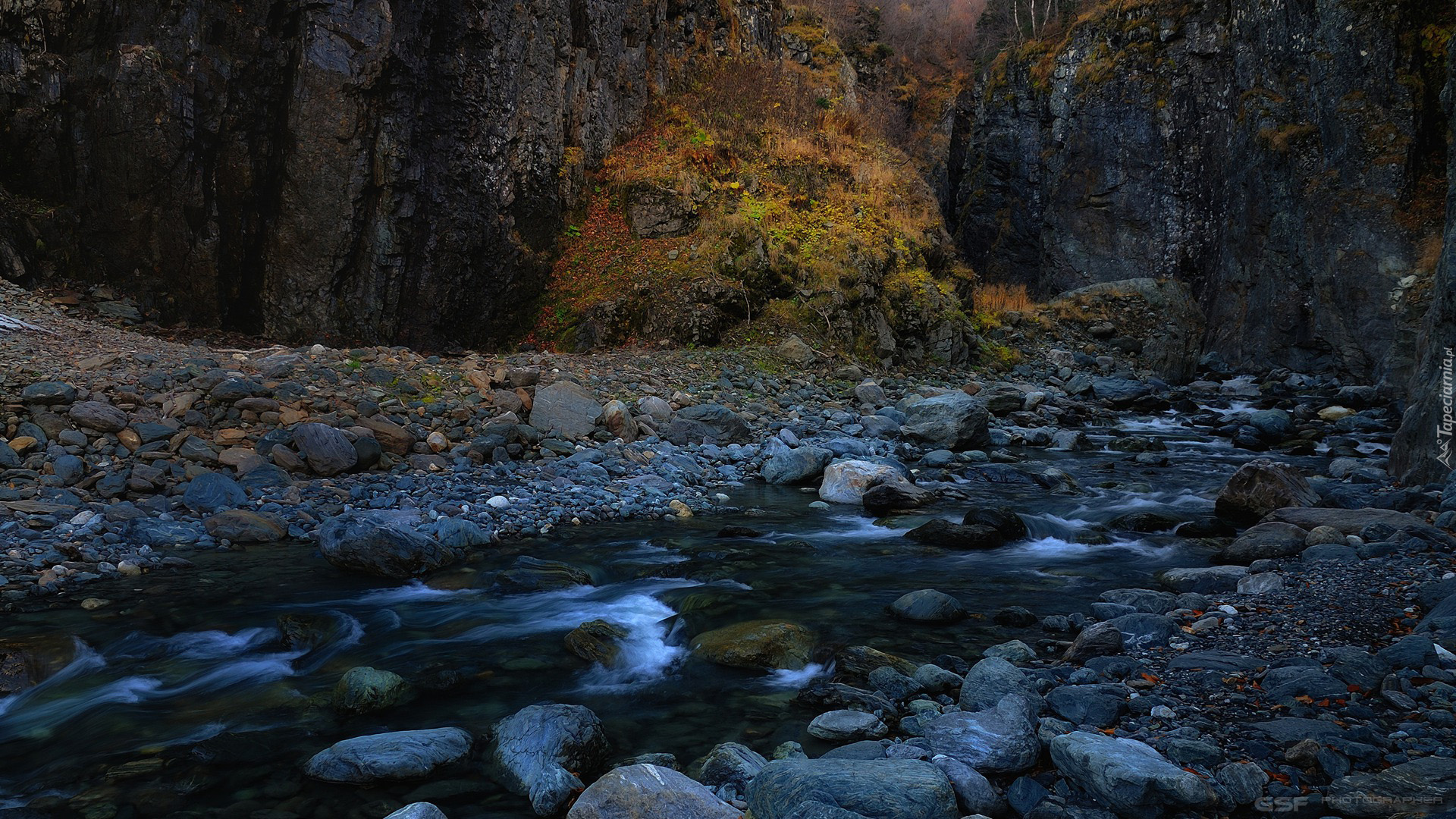 Edytor tapety: Kamienisty strumyk obok skał