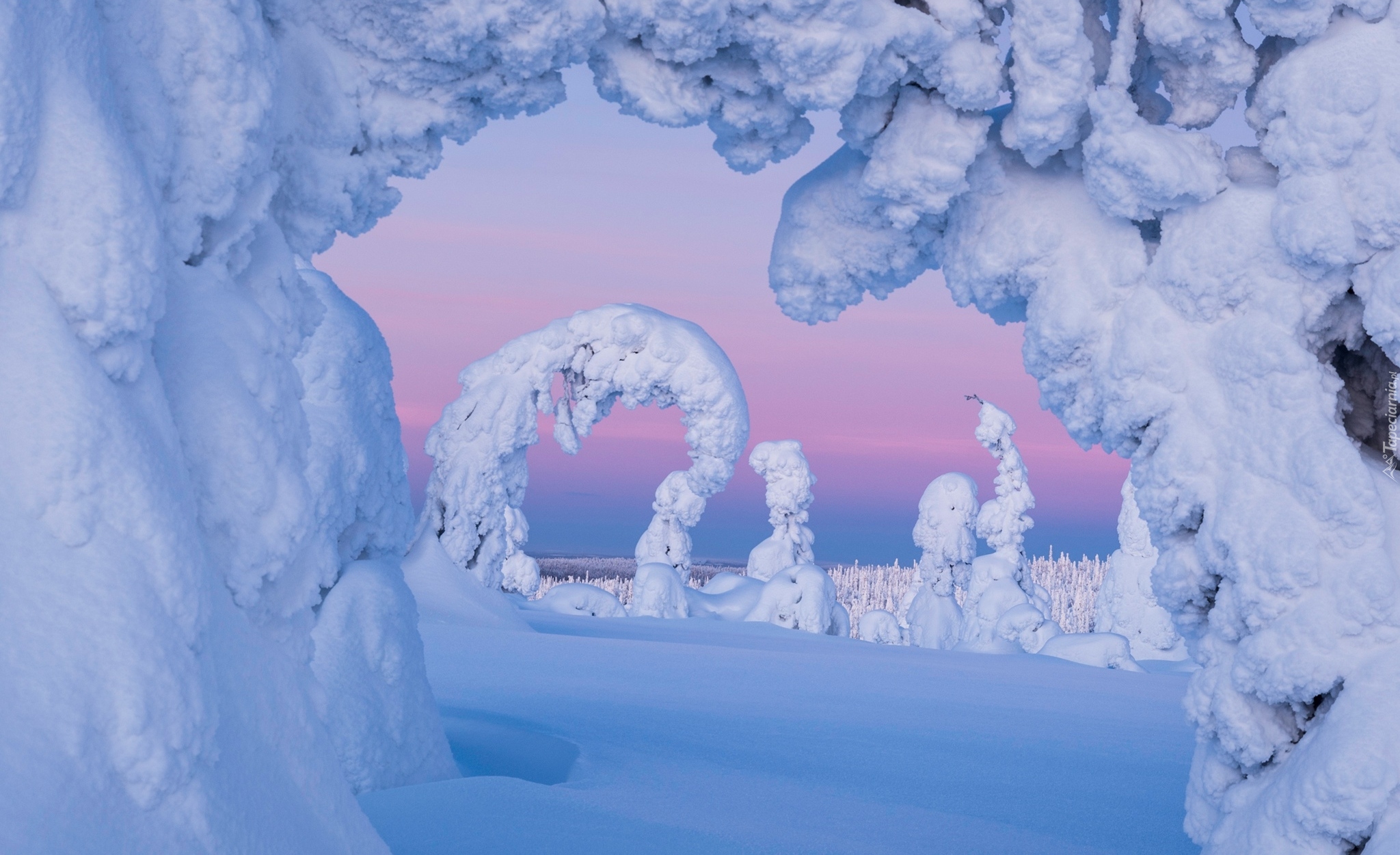 Edytor tapety: Drzewa uginające się pod śniegiem