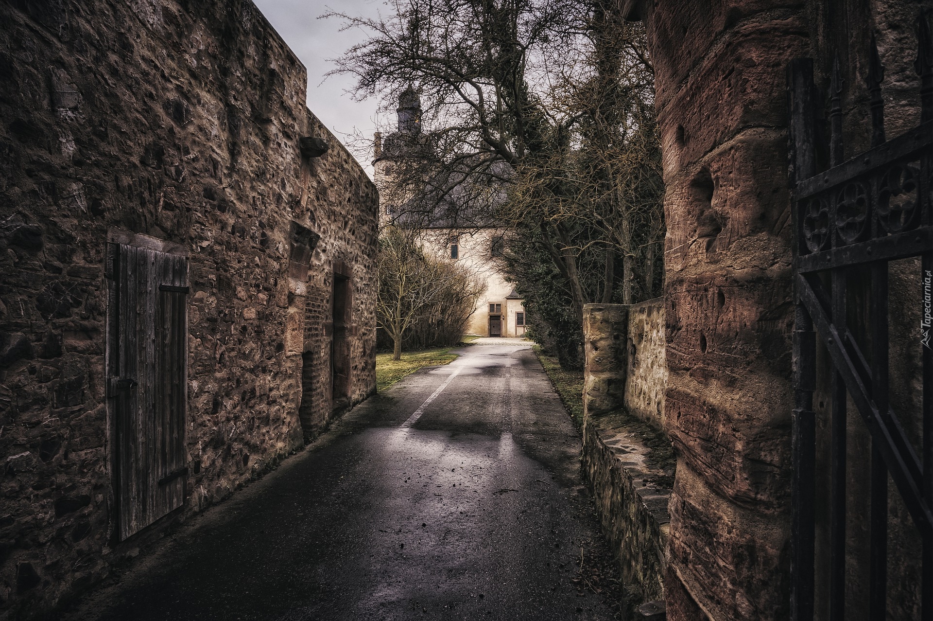 Edytor tapety: Przejście obok murów do budynku