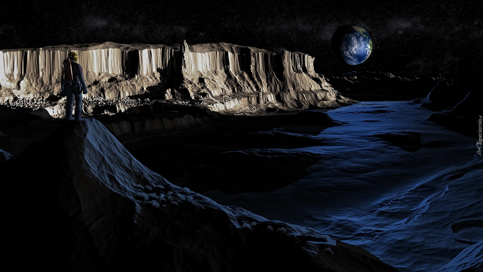 Edytor tapety: Astronauta spoglądający na Ziemię z księżyca