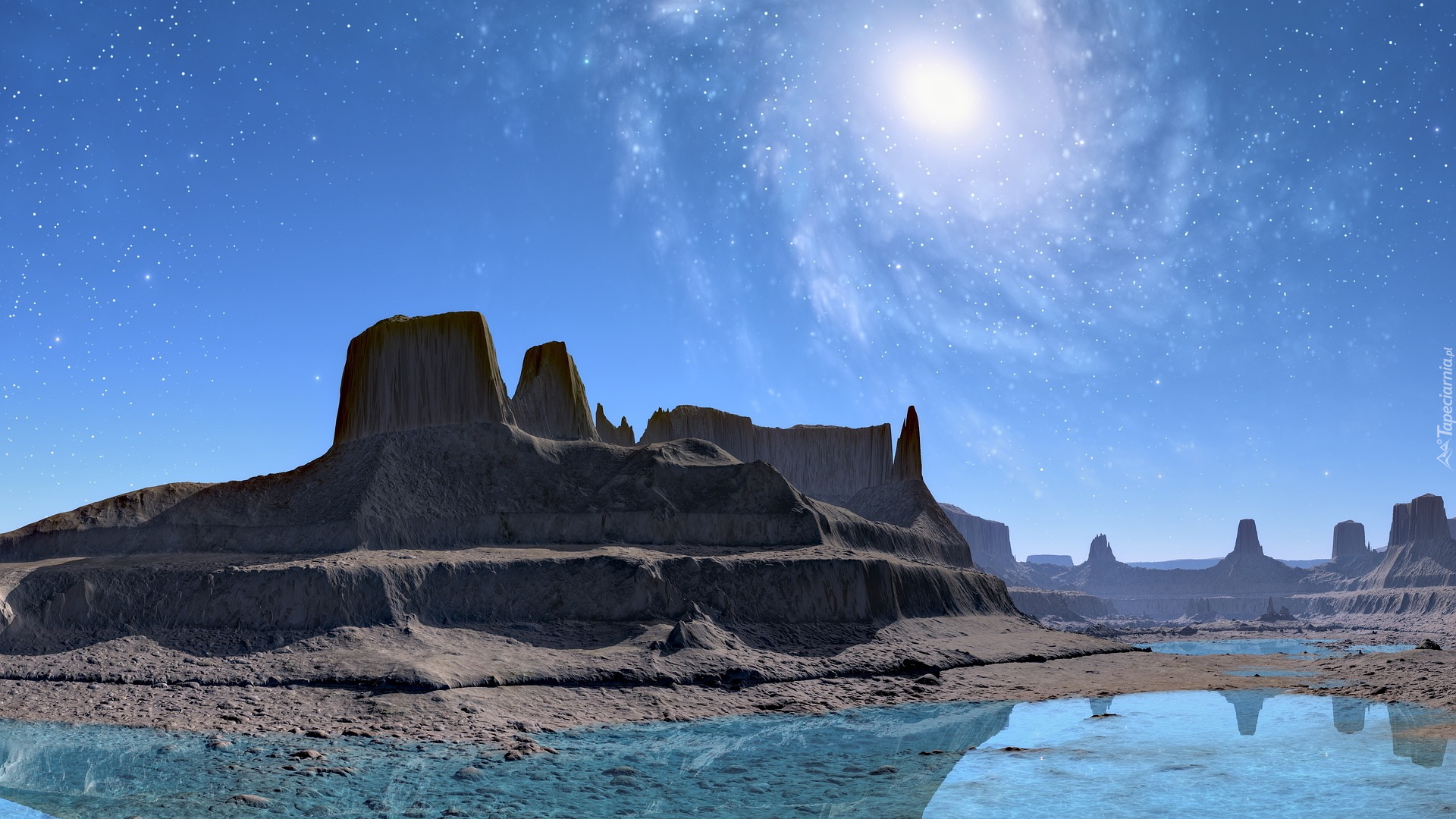Edytor tapety: Mgławica nad górami w grafice 3D