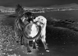 Edytor tapety: Mokre owczarki australijskie z kółkiem