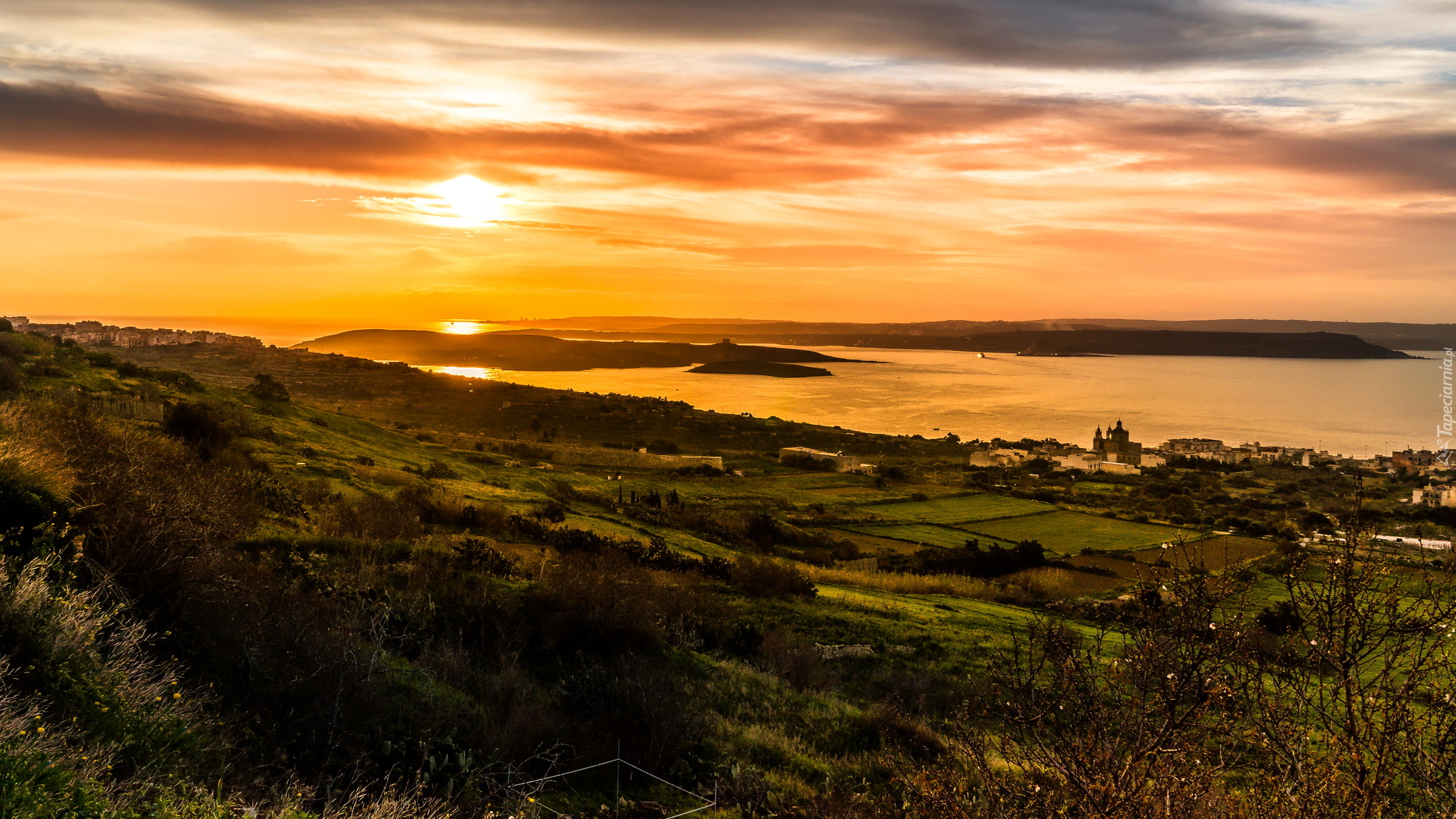 Edytor tapety: Wschód słońca nad miejscowością Nadur na Malcie
