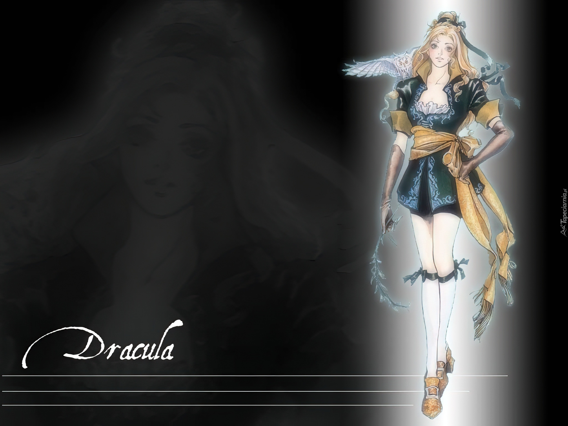 Edytor tapety: Castlevania, dziewczyna, nogi, sowa, stoi