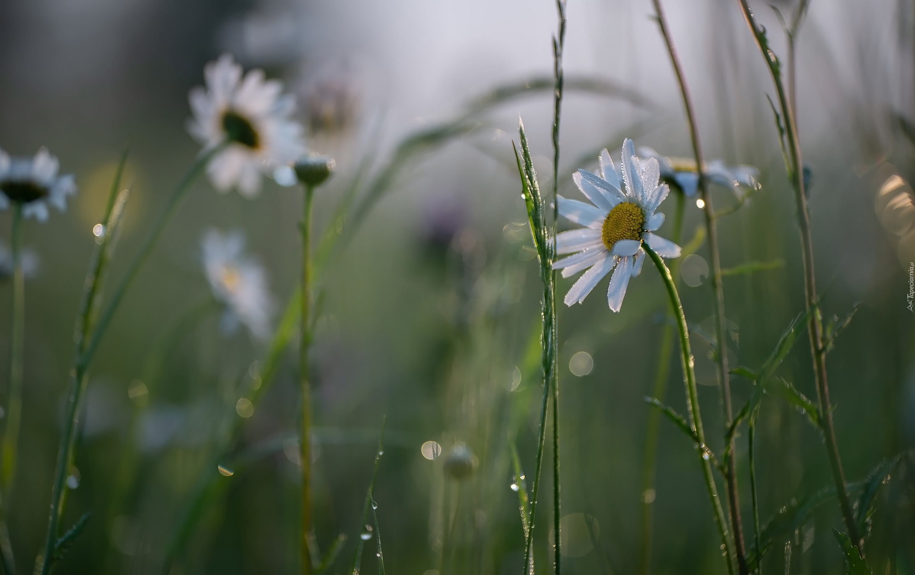 Edytor tapety: Margerytka obok źdźbła trawy