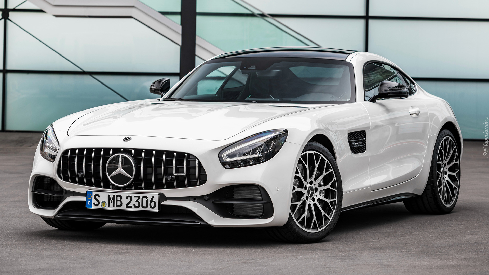 Edytor tapety: Biały Mercedes-AMG GT przód