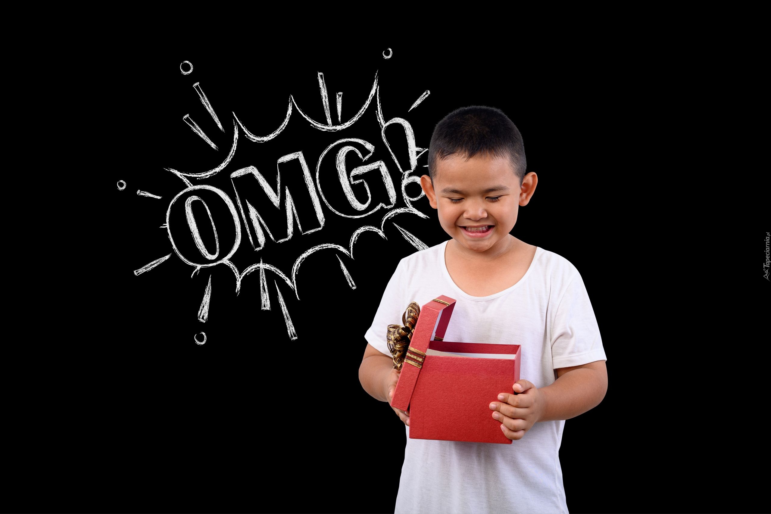 Edytor tapety: Chłopiec zdziwiony prezentem