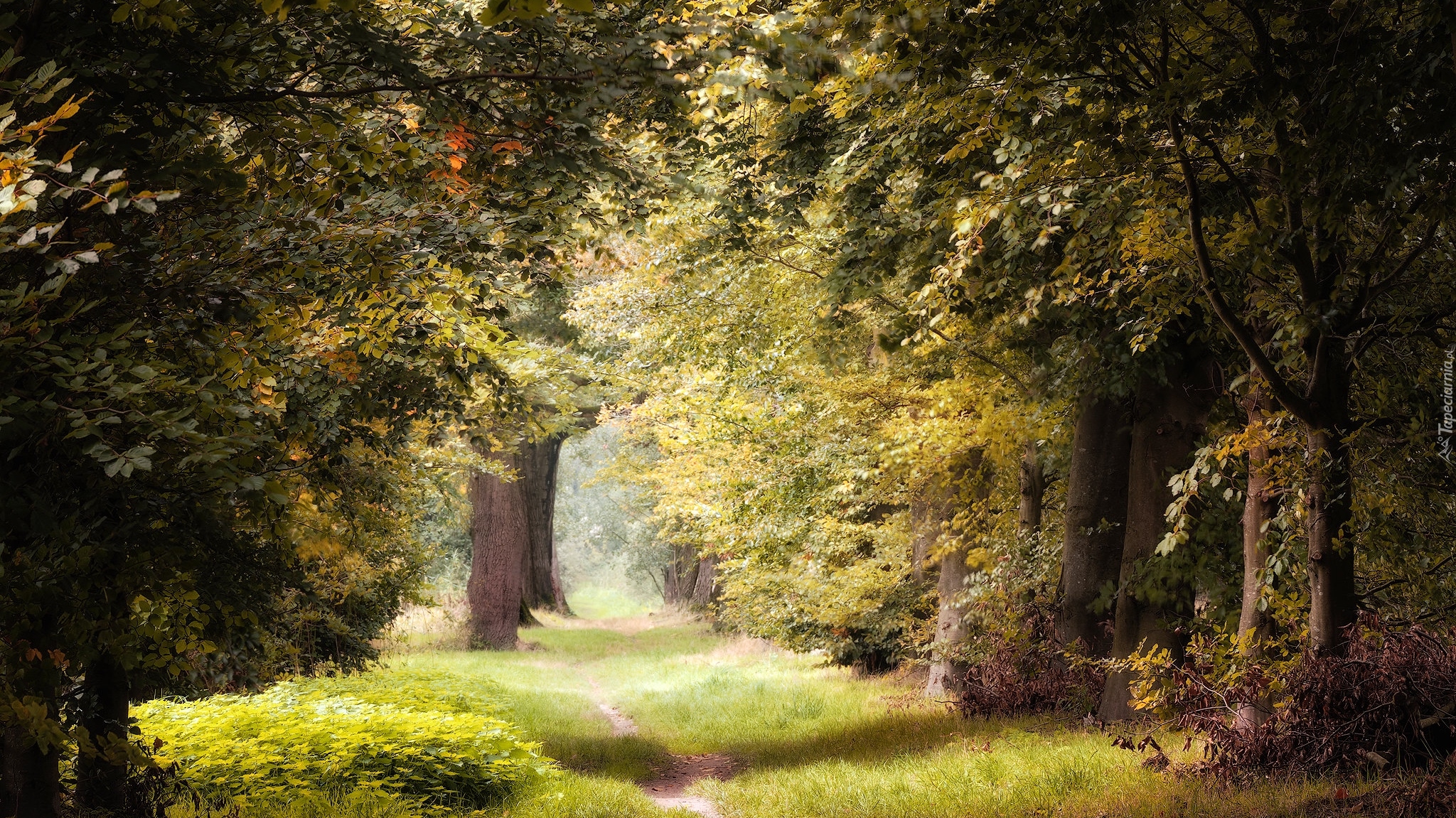 Edytor tapety: Porośnięta trawą leśna ścieżka