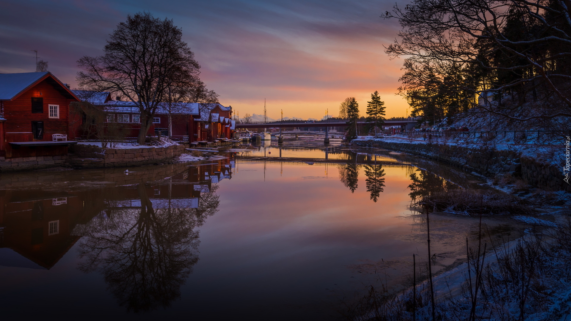 Edytor tapety: Most i domy nad rzeką Porvoonjoki w Finlandii