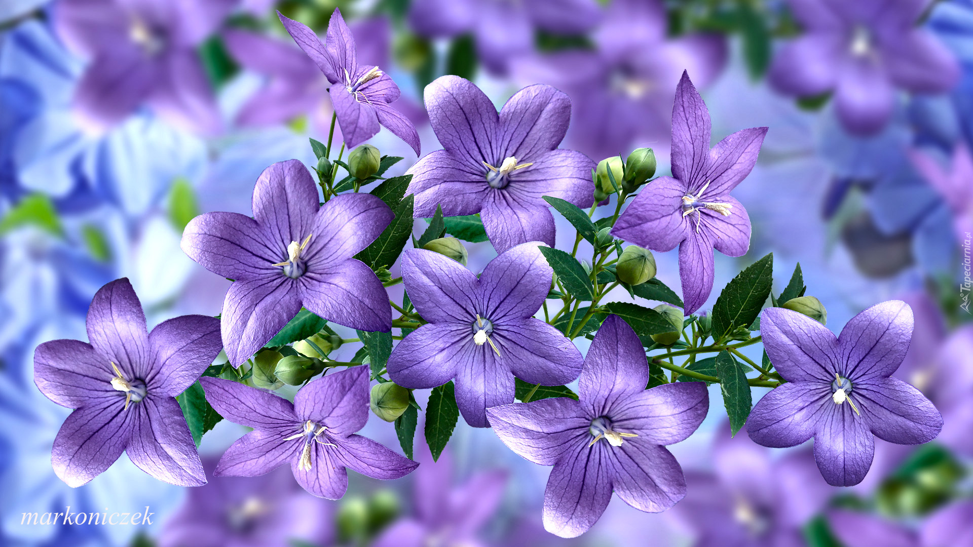 Edytor tapety: Fioletowe dzwonki z pąkami w grafice
