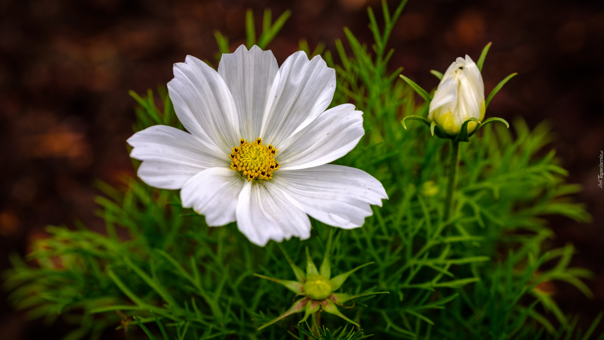 Edytor tapety: Biała kosmea z pąkami