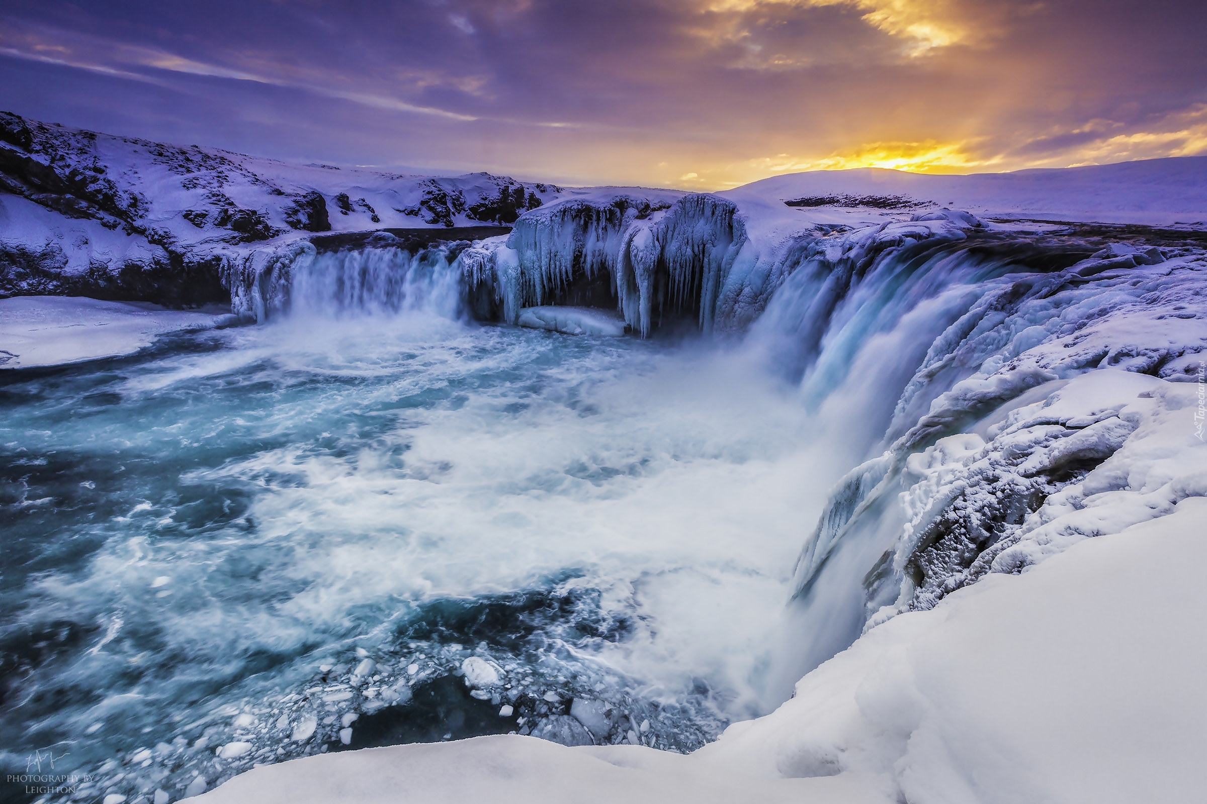 Edytor tapety: Sople na wodospadzie Godafoss w Islandii