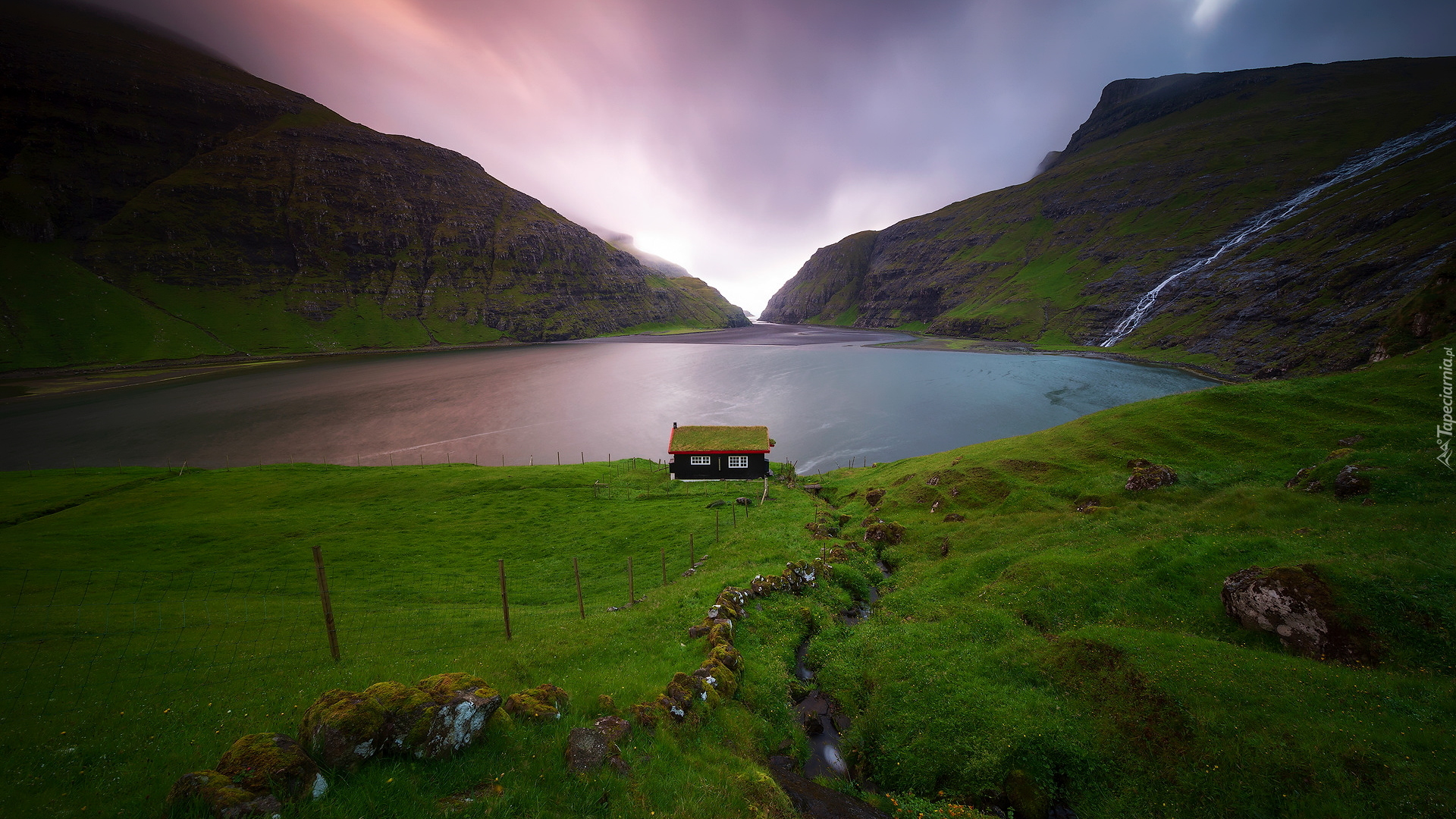 Edytor tapety: Dom nad jeziorem na Wyspach Owczych