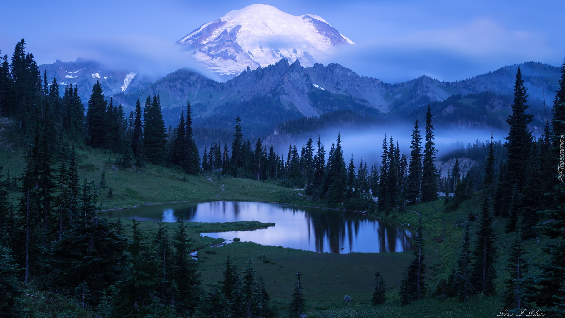 Edytor tapety: Jezioro Tipsoo na tle startowulkanu Mount Rainier