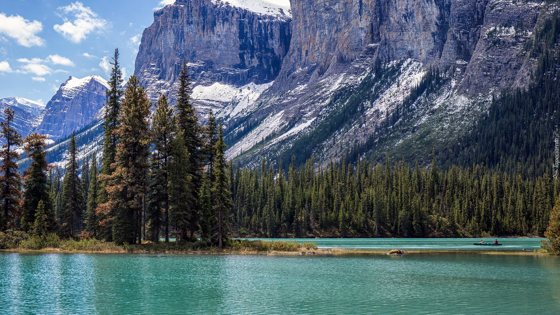 Edytor tapety: Drzewa na tle gór w Parku Narodowym Jasper