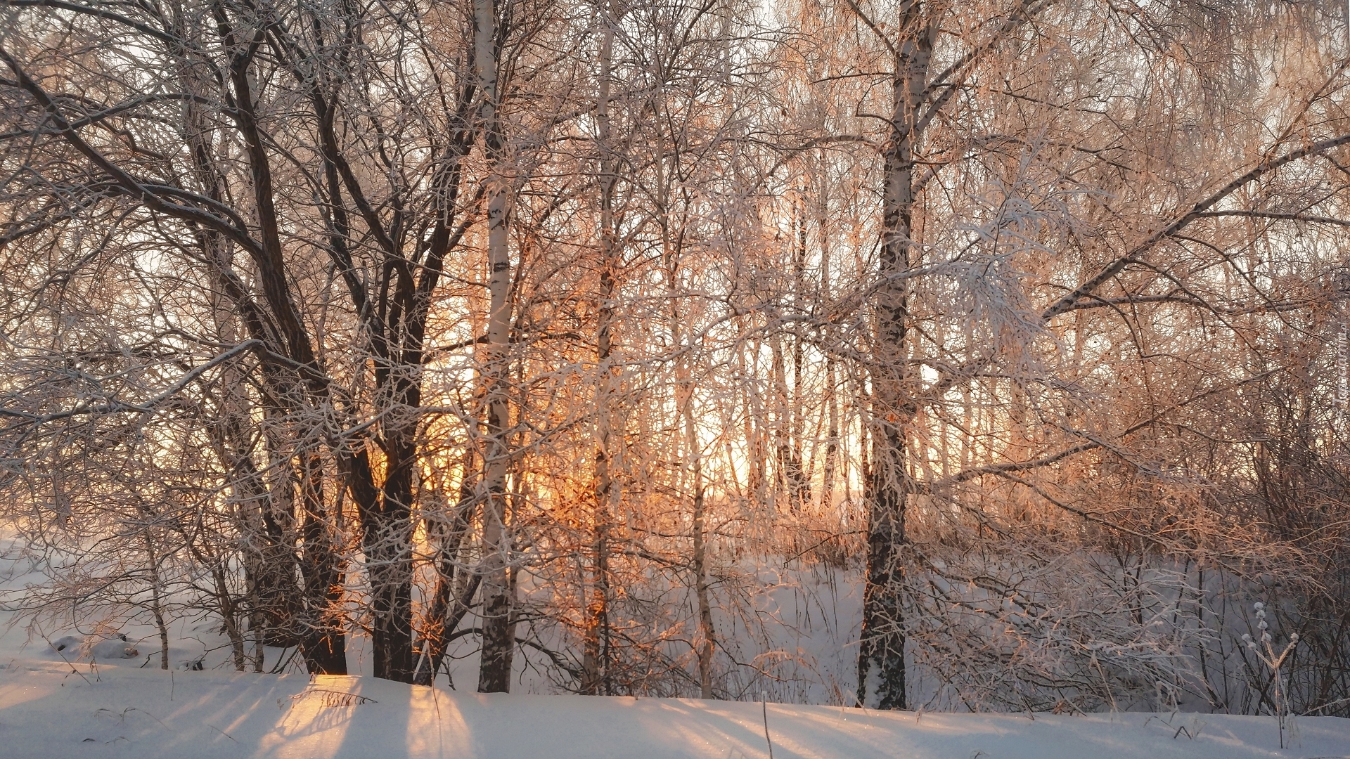 Edytor tapety: Ośnieżone drzewa w zimowym słońcu