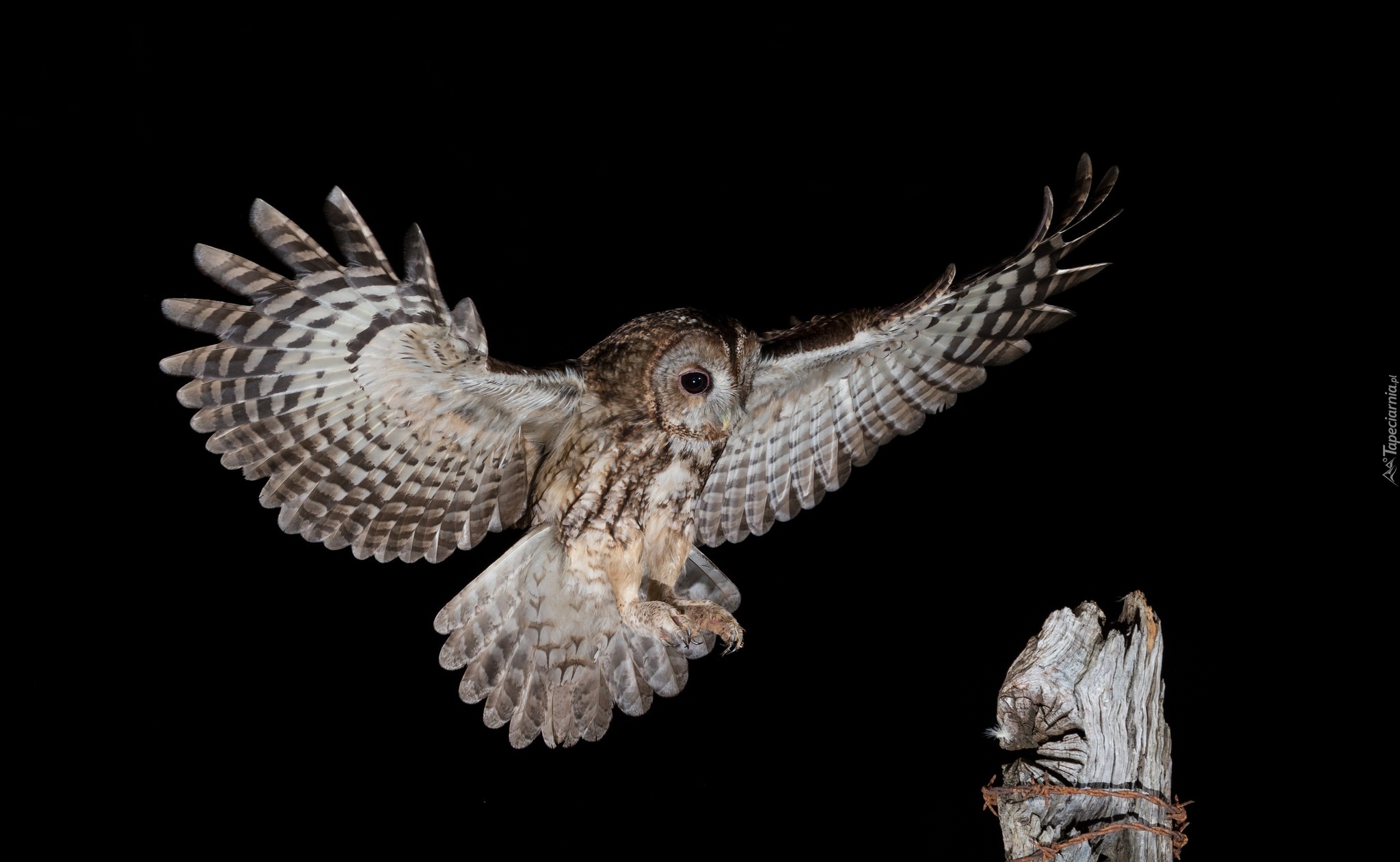Edytor tapety: Puszczyk zwyczajny na czarnym tle