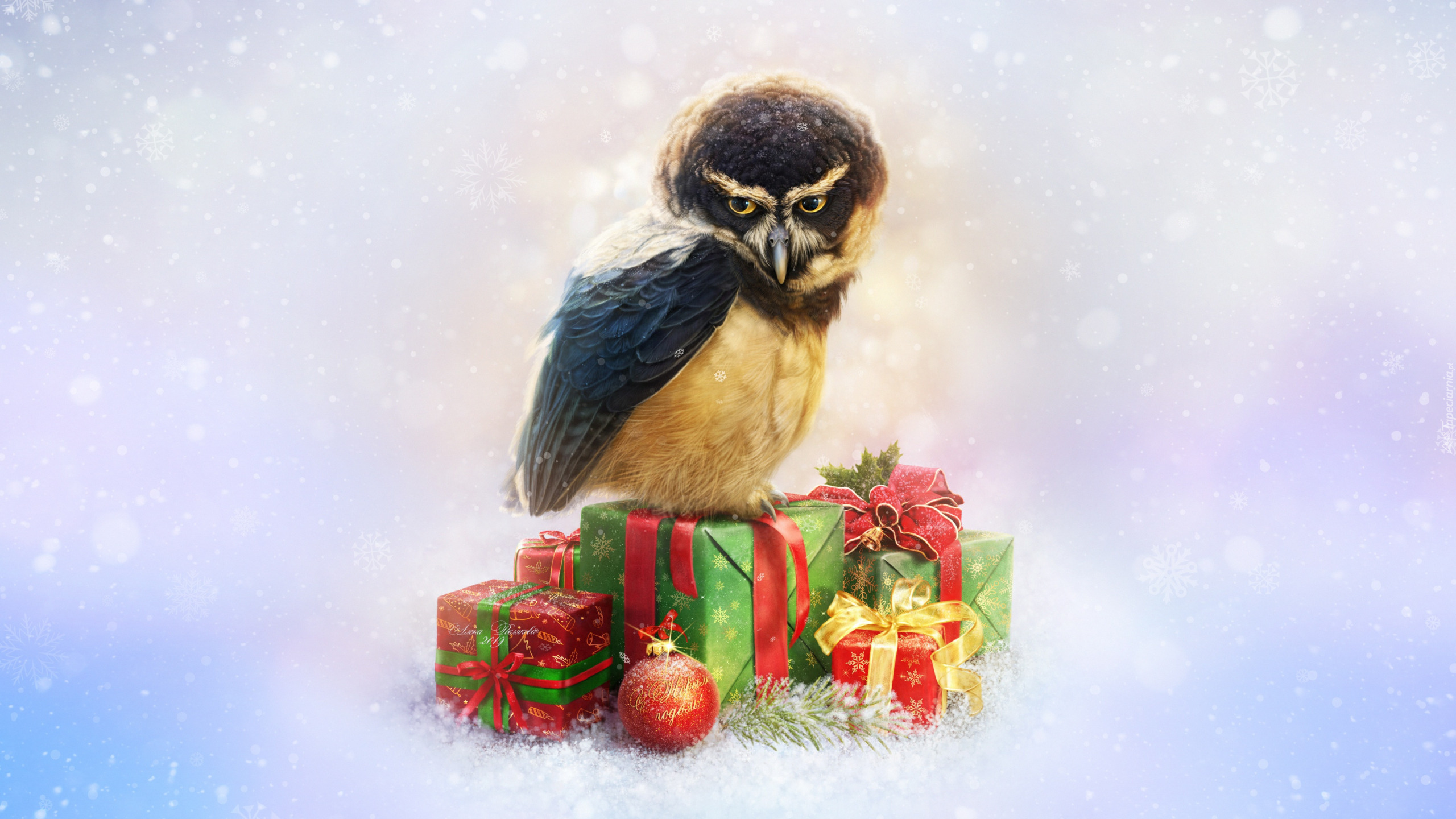 Edytor tapety: Puchaczyk żółtobrzuchy na prezentach