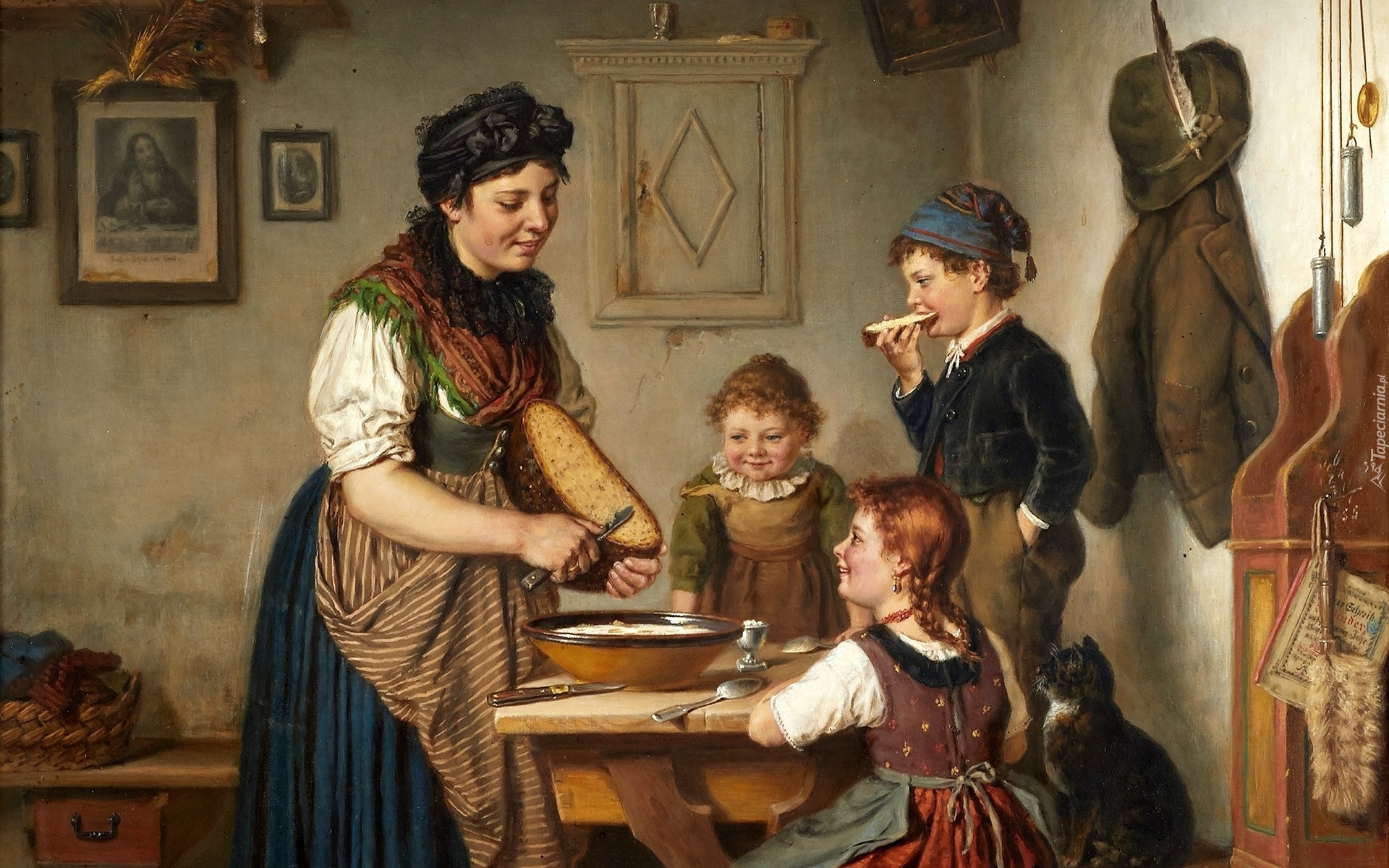 Edytor tapety: Kobieta i dzieci przy kuchennym stole