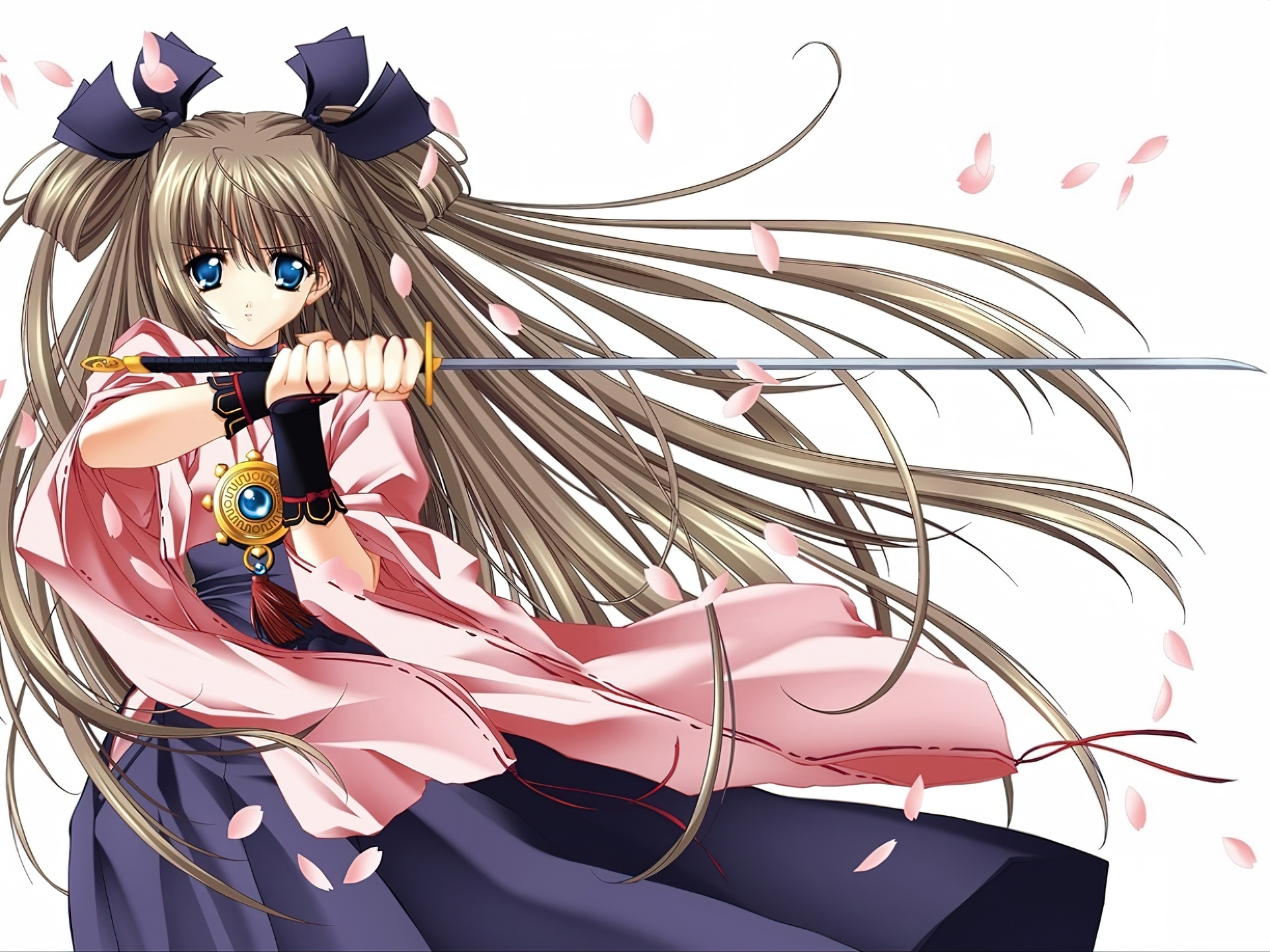 Edytor tapety: Carnelian, kobieta, płatki, miecz