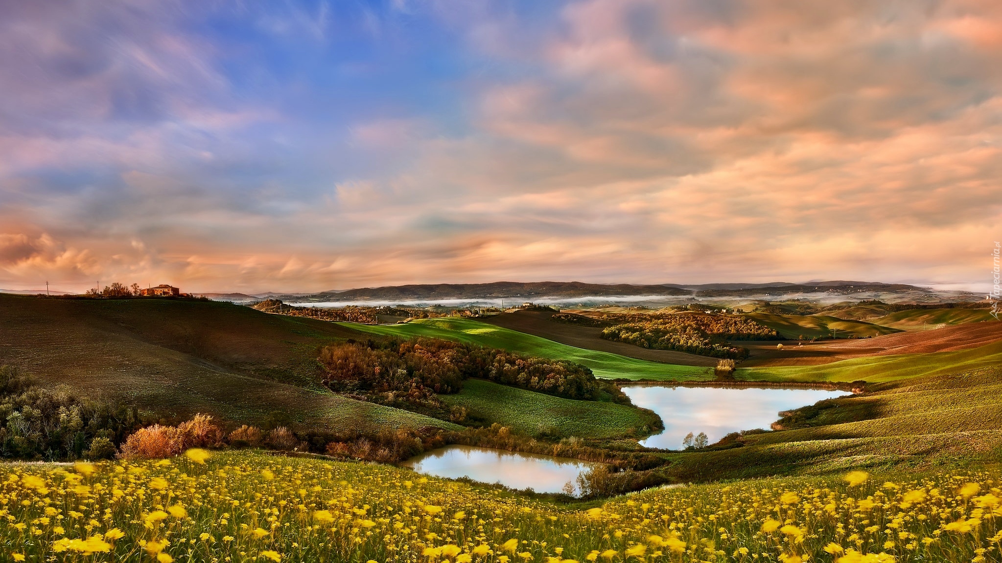 Edytor tapety: Dwa jeziora wśród wzgórz Toskanii