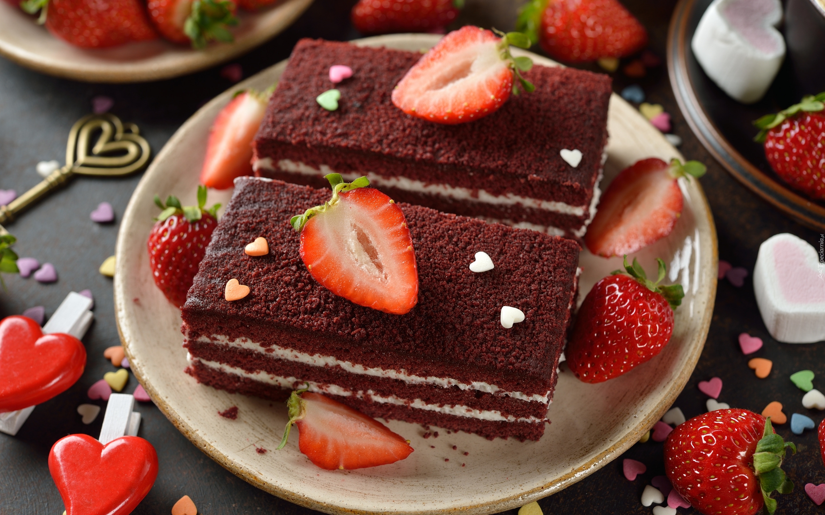 Edytor tapety: Dwa kawałki ciasta z truskawkami