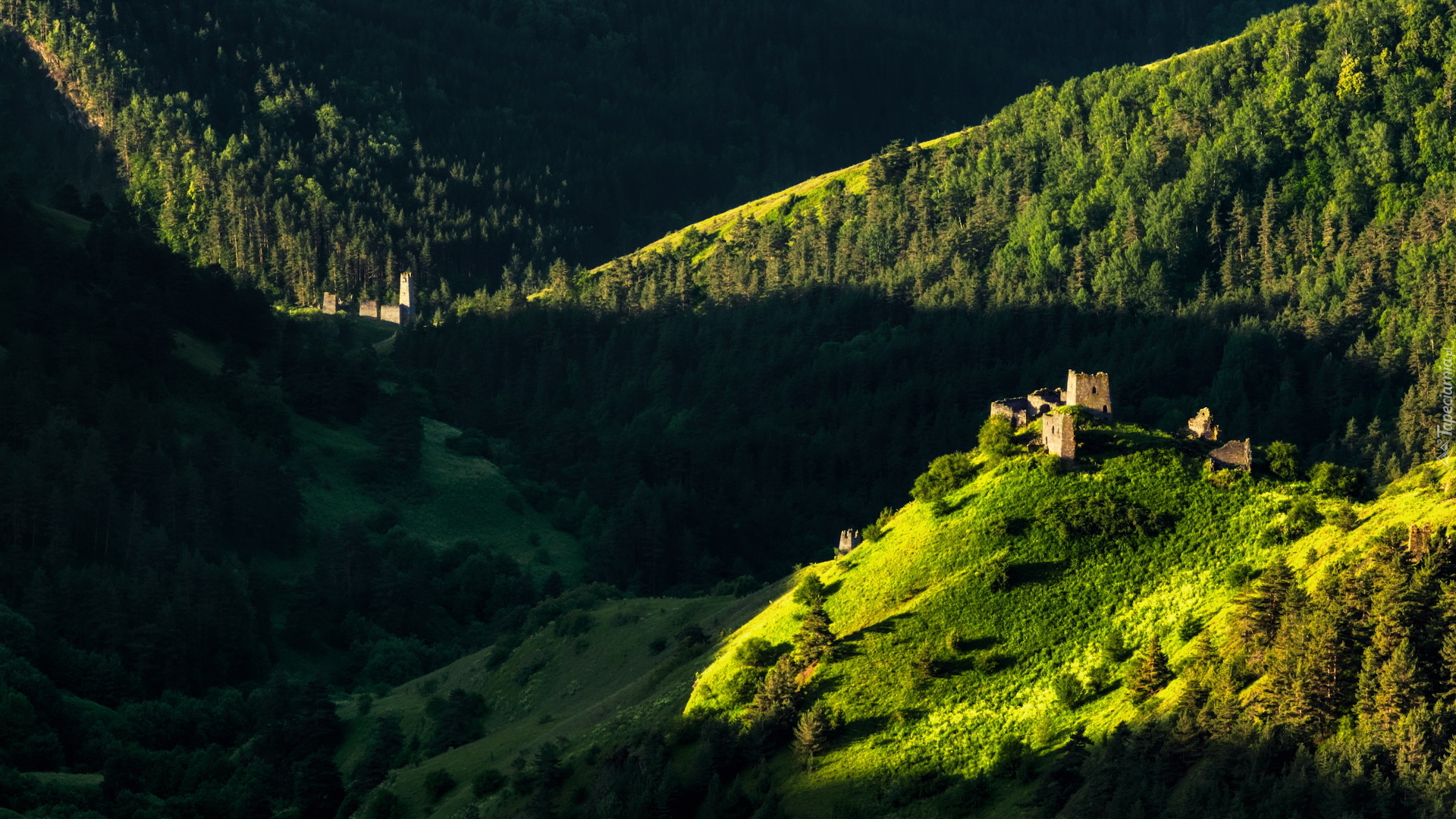 Edytor tapety: Ruiny na wzgórzach w rezerwacie przyrody Erzi