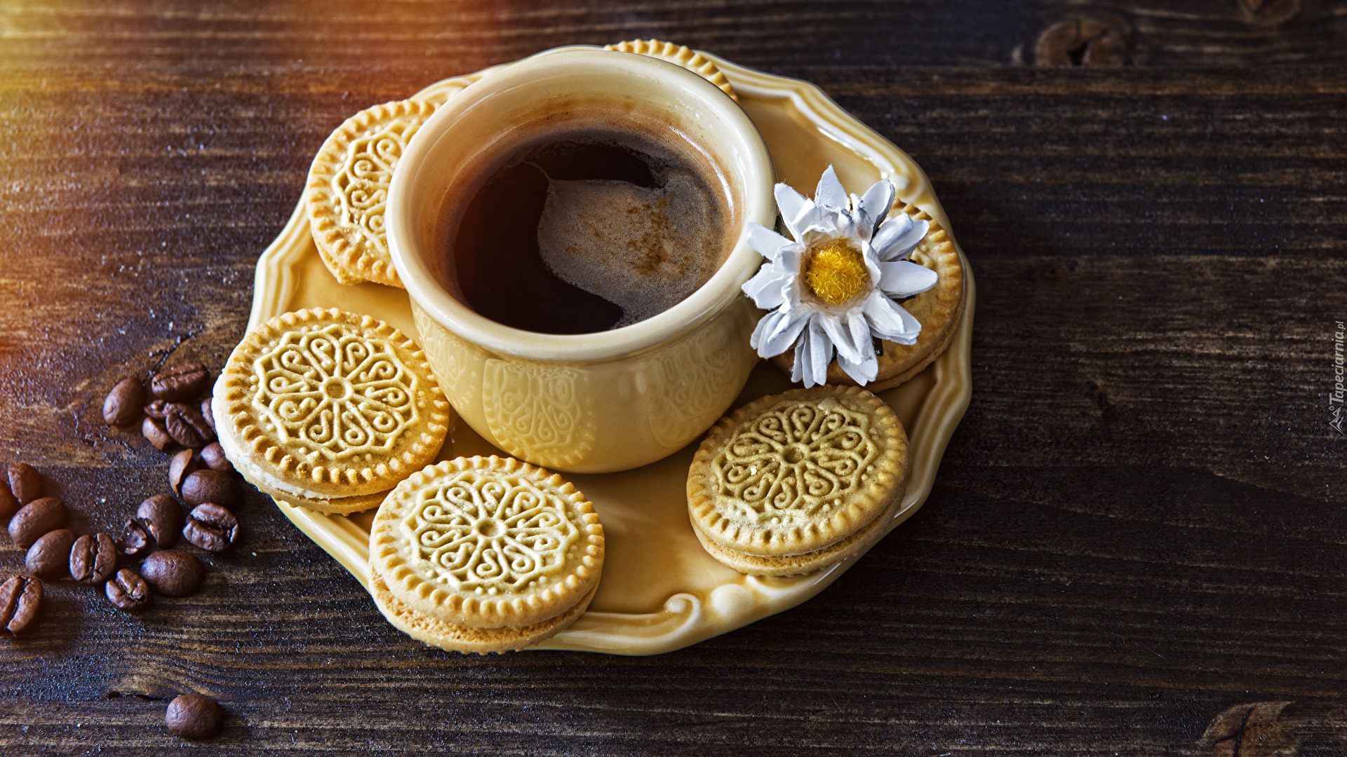 Edytor tapety: Ciasteczka na talerzyku obok filiżanki z kawą