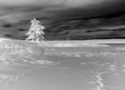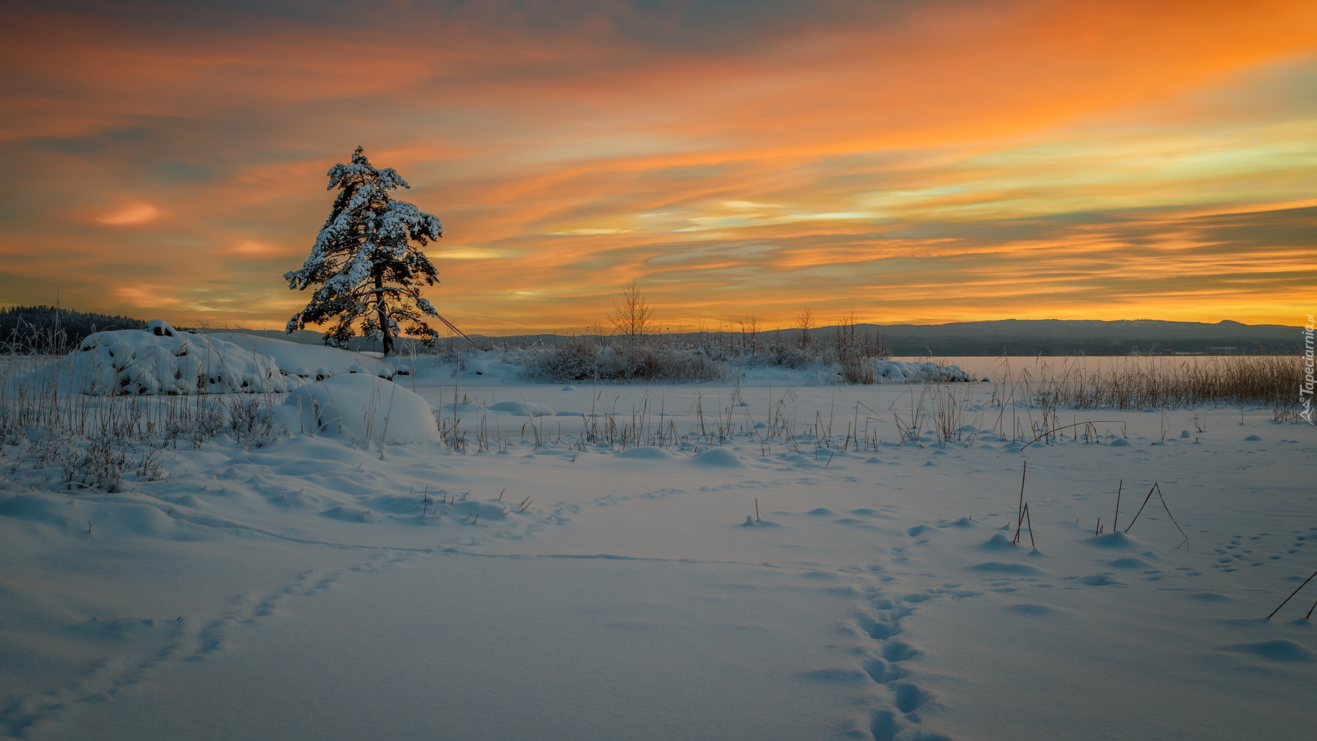 Edytor tapety: Drzewo obok zaśnieżonego jeziora Glafsfjorden