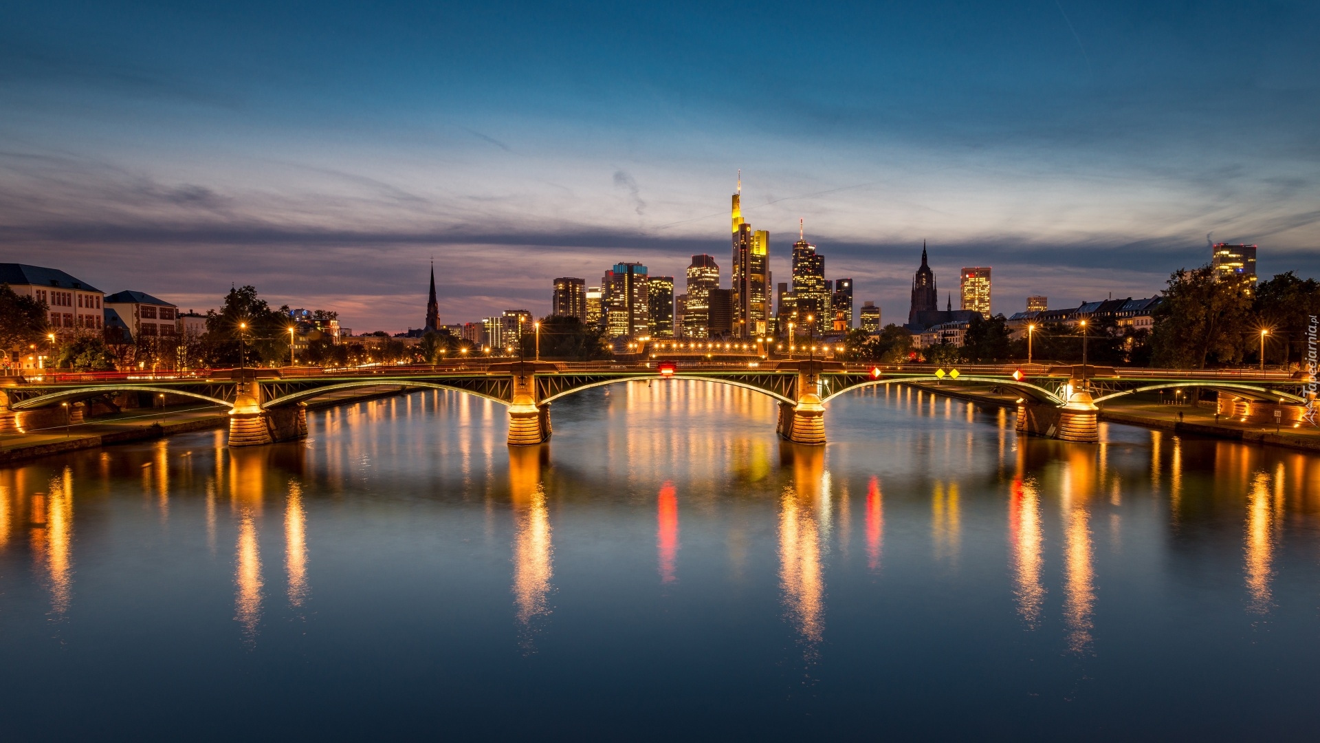 Edytor tapety: Oświetlony most nad Menem we Frankfurcie