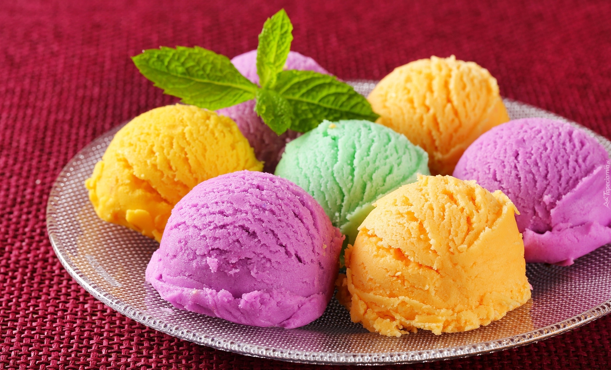 Edytor tapety: Kolorowe gałki lodów na talerzu