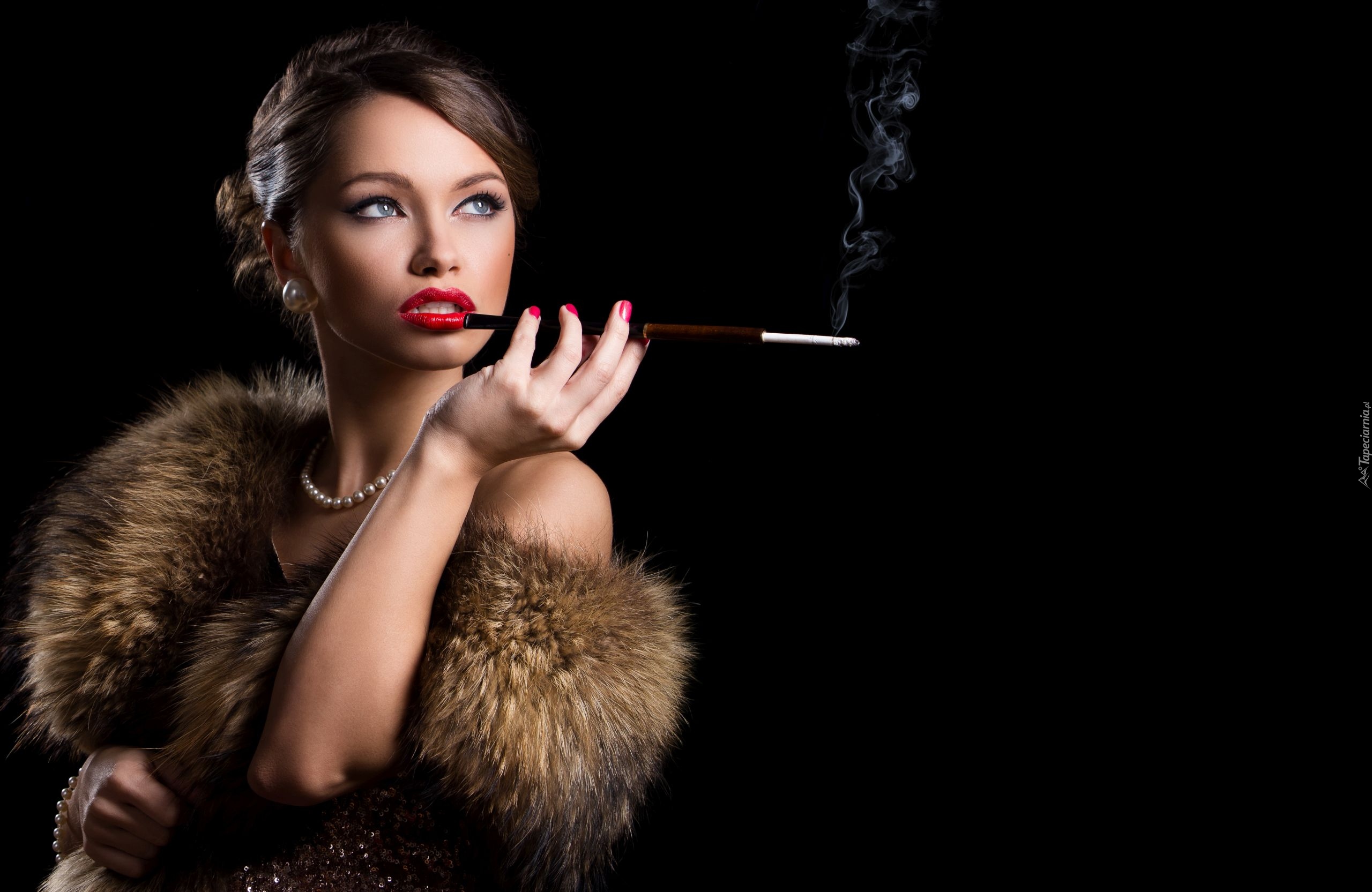 Edytor tapety: Kobieta z papierosem na ciemnym tle