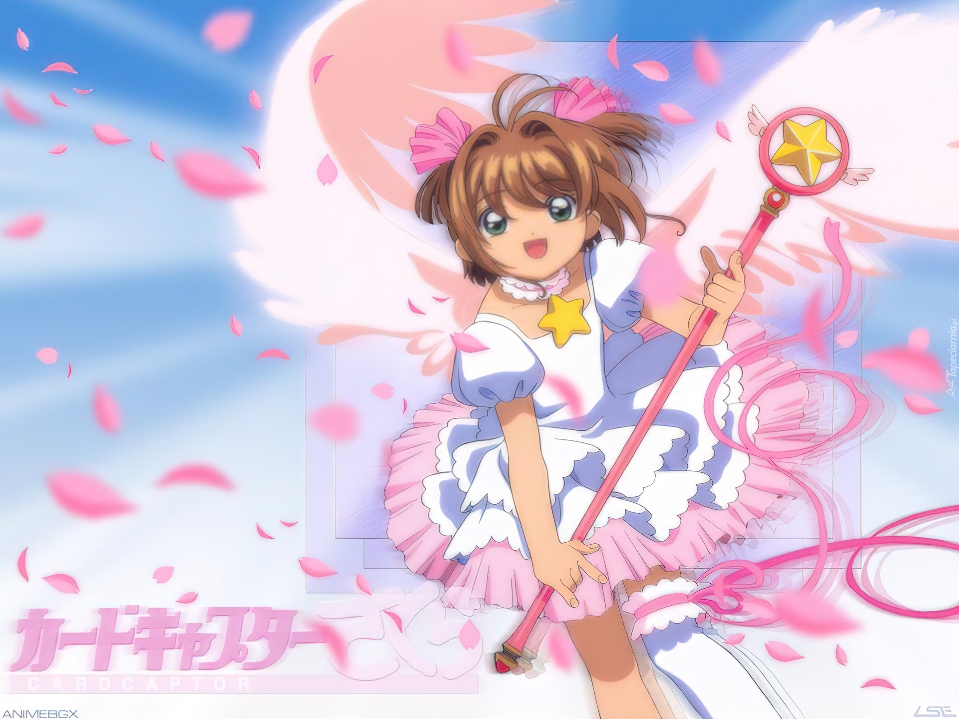 Edytor tapety: Cardcaptor Sakura, dziewczyna, napis, wstęgi, kij